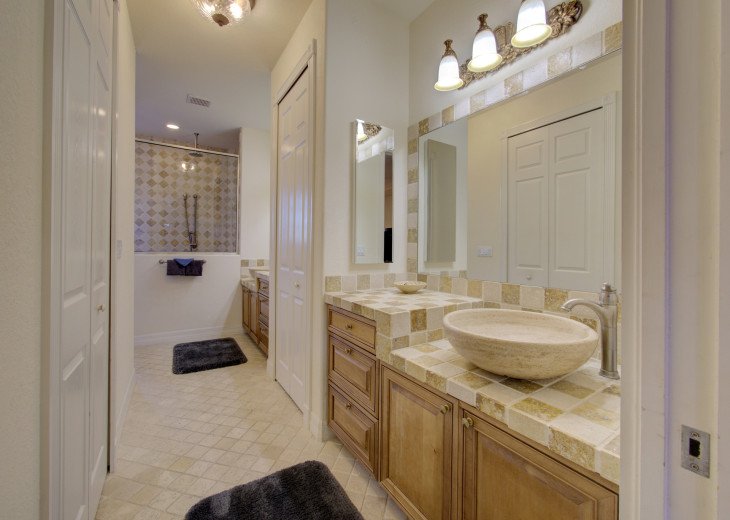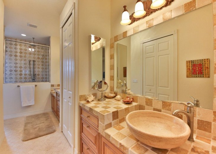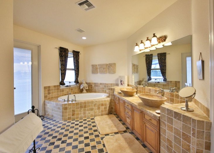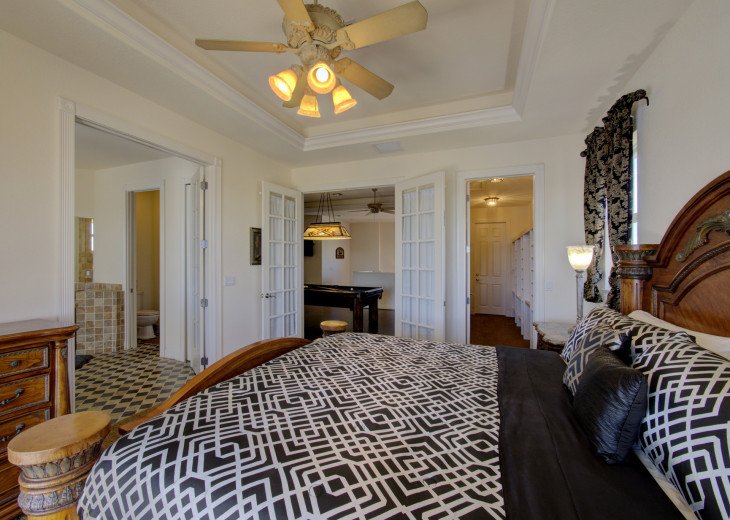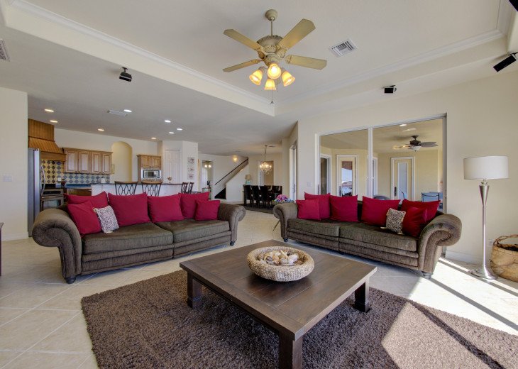 We split this house between two families and it worked out perfectly. The two master suites makes for an ideal situation if traveling with two families. The layout of the house was very wide open and allowed for maximum space. The outdoor area is fantastic, the pool is very large and surprisingly deep in two areas which made for great fun with the kids and adults. The living space outside is very deep and wide, there were a few times that it rained but we were able to still enjoy the outside area and not worry about getting wet. Had a great time!