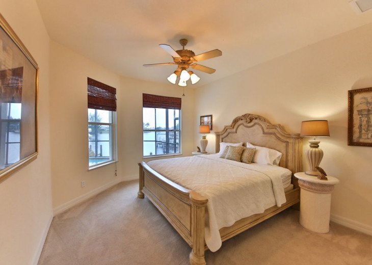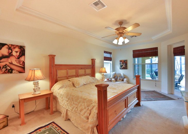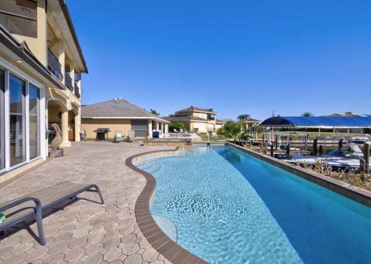 FLOIRDAYS RESIDENCE is a luxury villa in subtropical Southwest Florida fulfills many desires. Luxury Villa Tropicana is a newer dream home in Cape Coral. The generous terrace is south facing. The holiday villa has 2 master suites with king-size beds, plus 2 bedrooms (1 king, 1 queen), a lounge with a pull-out sofa and 3.5 bathrooms. From the living room you have a breathtaking view over the swimming pool and the wide canal. It is available throughout the house WiFi available. The kitchen is well equipped. The terrace is equipped with Poolmoebeln, a table with an open fire, 4 chairs and a gas BBQ grill. The pool and the outdoor pool can be heated. If you want to rent a boat, this is brought to their vacation home.