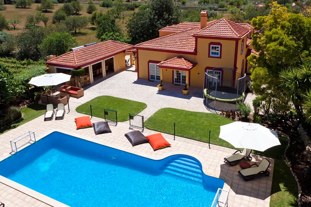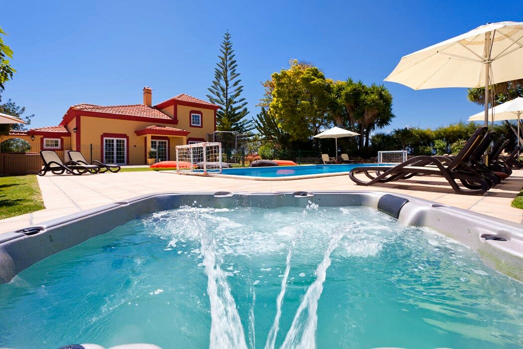 Casa Grande, is originally one of the oldest farmhouses in the area, and therefore has its own very unique character. It has 6 bedrooms (one wheelchair friendly), all with en-suite shower or bathrooms, and is set in a peaceful rural location. This is the perfect location to relax, recharge your batteries and even party every day if you wish, as there are no immediate neighbours. It is only 2 km from Porches, 7 minutes to Carvoeiro and 3 minutes to Lagoa. Within 5 minutes drive, there are a wide range of excellent supermarkets. The property itself is surrounded by wine vineyards, and boasts fantastic views of the Monchique Mountains (well worth a visit) and the surrounding countryside. The nearest beaches are only 5 minutes away. To note, we have, Praia da Marinha - voted in the top 100 beaches in the world, Benagil beach - great to get a boat for a cave trip and see the stunning Algarve coastline, and Albandeira beach. Within 15 minutes drive you can choose from 5 different golf courses. Less than 45 minutes from Faro International Airport, this is a perfectly located property to explore everything the Algarve has to offer. Alternatively, you may just want to stay in and chill, enjoying all the facilities at the Villa, listening to music through the Sonos system. Fully fenced in landscaped garden with electric entrance gates. Pool, jacuzzi and sun deck separately fenced. Regularly, we accomodate guests with special needs, as it is wheelchair friendly, has a wet shower room and is fairly flat around the house itself.