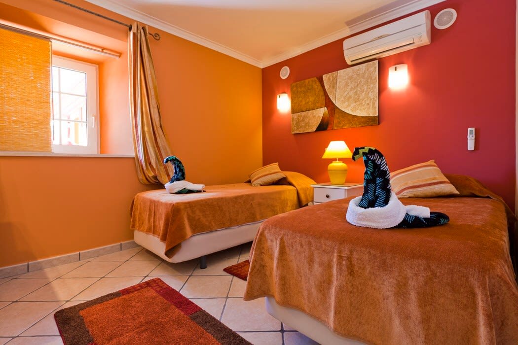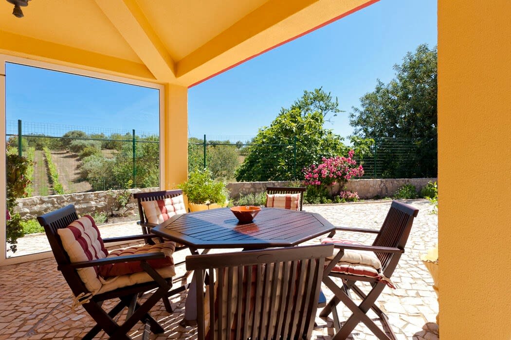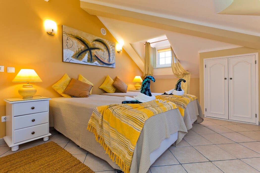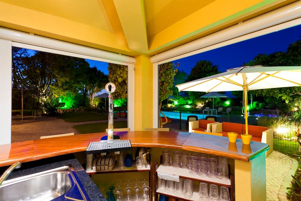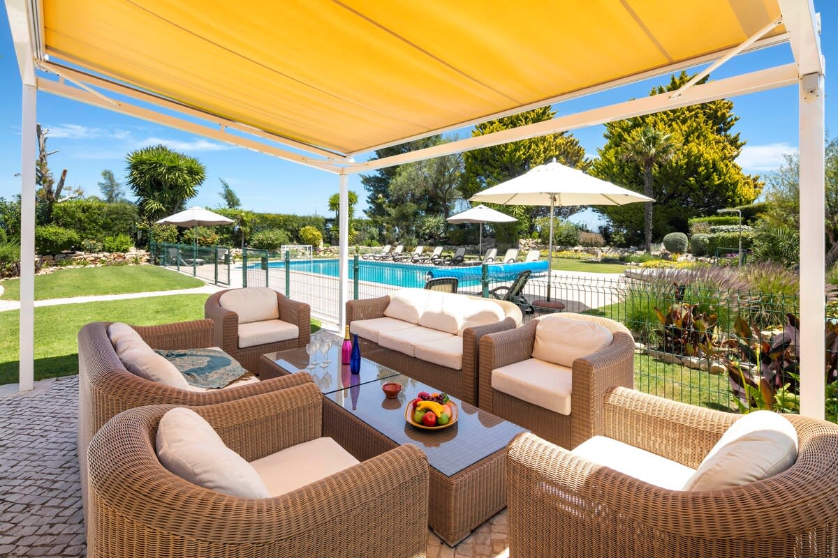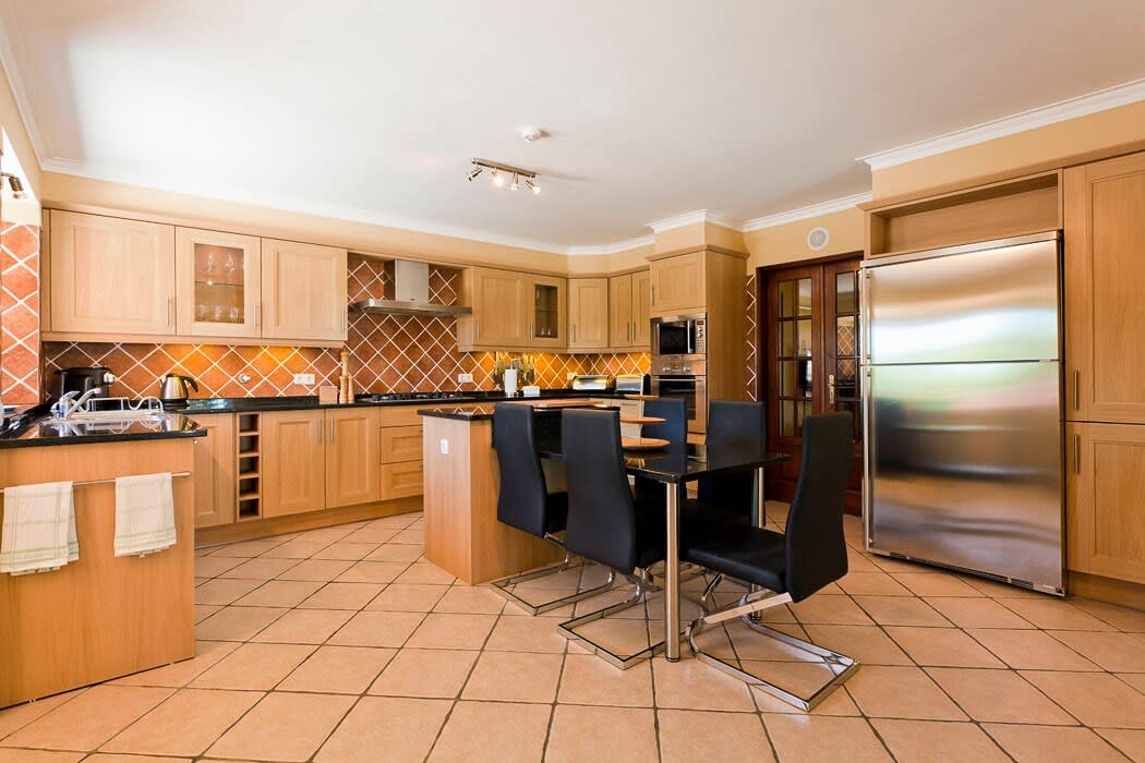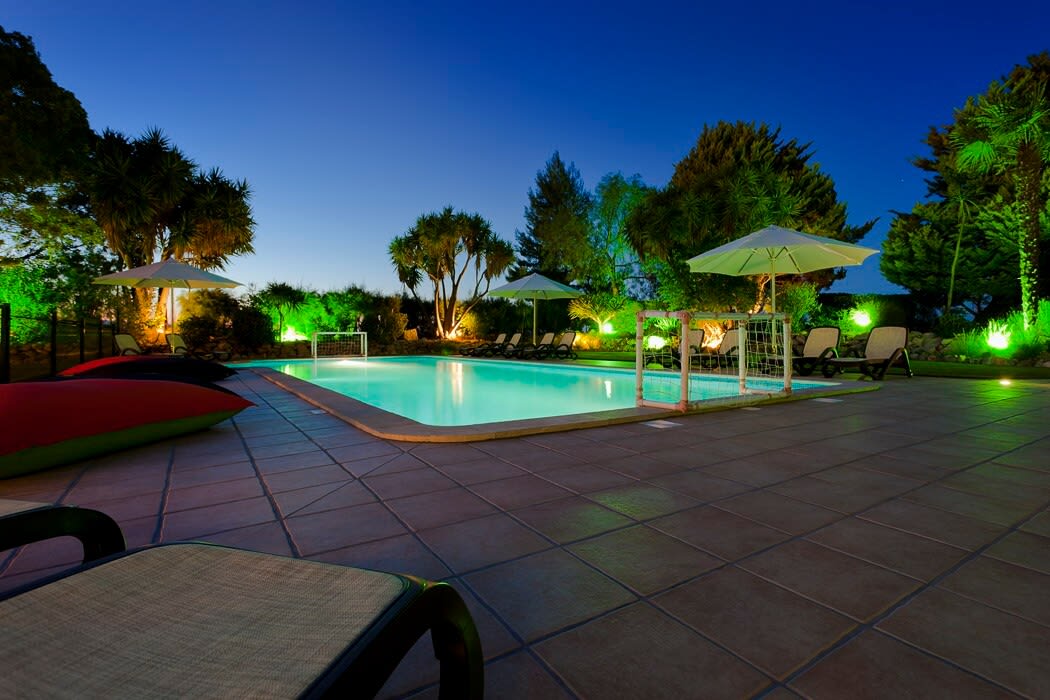 The property has six bedrooms, two of which have king sized beds, the others have twin single beds. All bedrooms are en-suite with either single / double showers and/ or bath. Both bedrooms with king-size beds are on the first floor. Wheel chair access is available to one bedroom, with a wet room, special washbasin and toilet (even though you would not notice). The main advantage of the property is that there are various different areas to be. In that way, nobody gets in each others hair!! Cots and high chairs are available at the house. Bedding will be provided, along with face, bath and pool towels.The pool is about 13m x 5.5m. This can be heated, if required, at extra charge of 250 GBP per week. There is a 7 night mimimum charge. An important note is that the pool area is fenced in, thus giving more peace of mind with regards to little ones. There is also an outdoor jacuzzi in the pool area. Free wi-fi is available in the house, plus an additional access point covering, the bar, the barbecue area and some terraced areas, such as the outside sofa area and some parts of the pool terrace. A very popular option with our guests is draught Sagres beer, costing 120 Euros for 50 Litres (approximately 90 pints). We also have Strongbow Cider at 130 Euros for 30 litres and draught white wine at 120 Euros for 30 litres. It is amazing how well these drinks go down in this climate! The beauty of the outside dining/ kitchen area is that it is covered and shaded, a good escape from the sun. There are two barbecues one gas and very easy to use (plus you don\'t get your hands dirty!), or another for the charcoal aficionados as well as a new log pizza/bread oven.