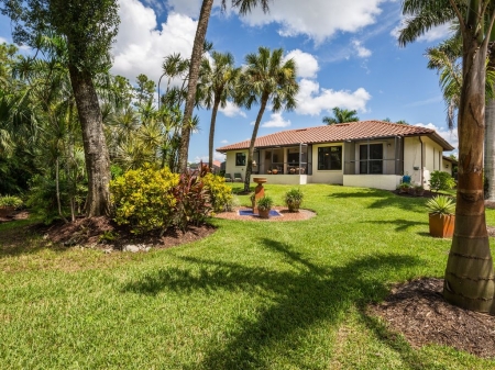 ONE OF A KIND! Absolutely beautiful and pristine postcard perfect home surrounded by an extraordinary out of this world lush and vibrant tropical garden! This charming and loveable home is privately set on the end of a cul-de-sac just one plot from the Imperial River and captures a peace and serenity often sought but rarely found. The home itself has been meticulously cared for with recent updates including new modern kitchen and luxurious master bath, new impact windows throughout, new A/C and Hot Water Heater in 2016 and more. Additional features include popular light and bright open floor plan, two separate covered lanais overlooking the garden, two lovely guest bedrooms, spacious second bath, Tunisian tiles at entry, large driveway for ample parking and numerous additional details to be discovered. The garden irrigation water is sourced from a deep clean well rich in minerals while the interior of the home is sourced from city water. Schedule a private showing today and discover for yourself what sets this home apart from all the rest. Also conveniently located close to shopping, dining, white sand beaches and all that wonderful SW Florida has to offer.