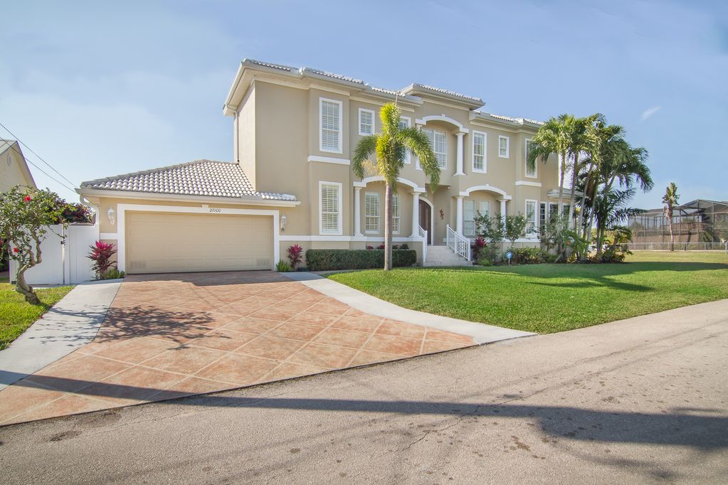 Gulf access Pool,Boat dock luxury vacation rental on the water with Gulf of Mexico access. 3300 sqft 4 bedroom Master and second bedroom downstairs. This is not your ordinary rental home. This custom built luxury home has an impressive layout featuring a living room, formal and informal dining rooms, a huge gourmet kitchen.The main living room features an over-sized sectional sofa , entertainment center 70 inch flat screen Tv and a wet bar. Private pool luxury waterfront 4900sq ft includes screened in patios, lanai, swimming pool ! The master suite features custom furniture, King size Bed , 60 inch flat Tv. The master bathroom rivals any spa with dual shower heads and a huge jetted tub all finished in marble.