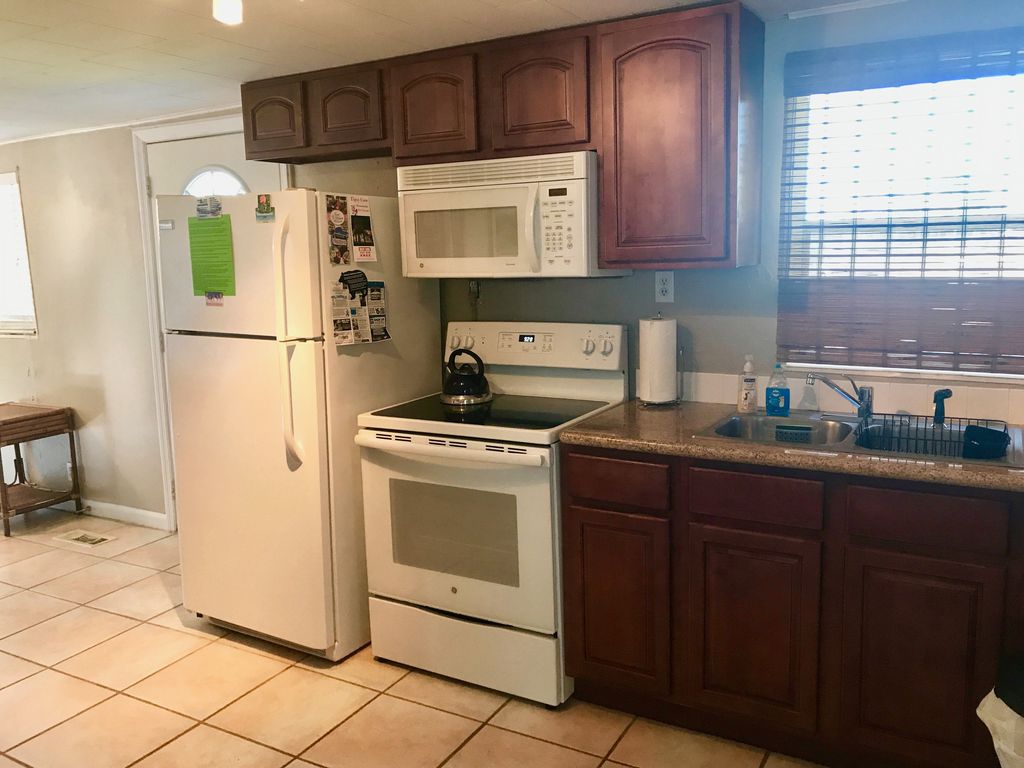There is a queen size bed in the bedroom and a queen size fold out couch in each unit. There is tile throughout except for the new carpet in the bedroom. You have several dining options - a breakfast bar for two, or enjoy eating at a larger table for 4 inside or the outdoor lanai seating for two. The kitchen has all of the appliances and dishes you will need to make your stay comfortable. There is smart TV with a DVD player for your enjoyment.