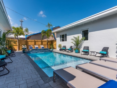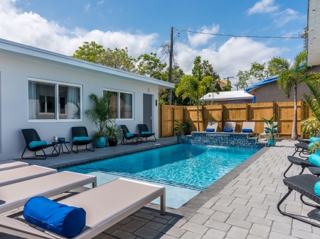Great for couples, small or large families, or big groups! Just two blocks off the famous \"Ave\", walk to the beach and everything! Lux furnishings, saltwater pool, outdoor party area and grilling station. Search lavidadelray on Facebook or the web!