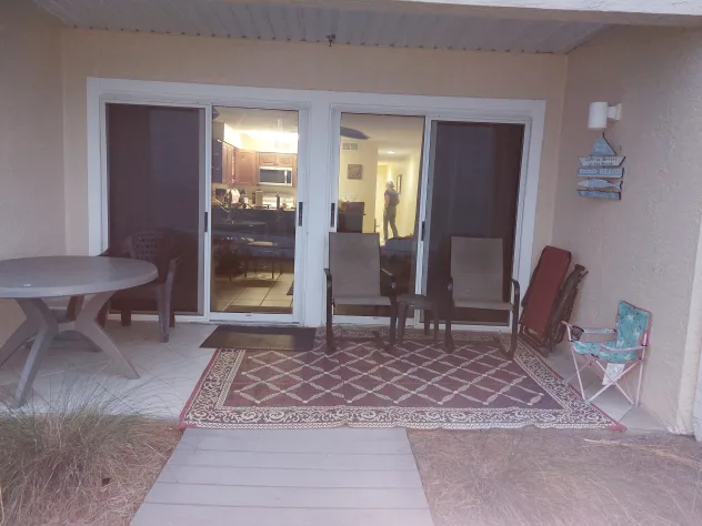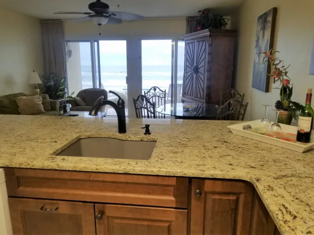 We loved our week here in this condo. The kitchen has everything you need. It was very clean. Even though the unit is on the first floor you still have wonderful views because the condo is higher ground than the ocean. You walk right out of the unit and your on the beach in a few seconds. The beach service was a great addition plus having a private beach where no canopies are allowed. Get up early to put towels on your chairs. The owner was very friendly and helpful. She always got back with us on any questions we had. The condo was very clean and it had a vacuum that I used frequently to help with tracking in sand. Very relaxing sitting on the covered porch listening to the waves roll in. We will be staying here again. Thank you again Tami, for all your help and kindness!!