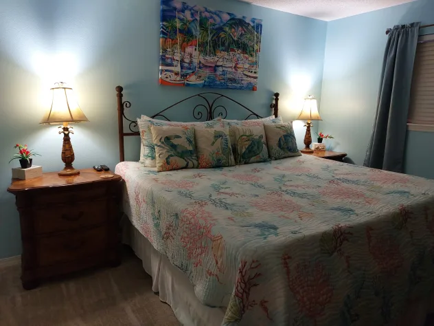 You will love the beautifully decorated beachy theme in this updatd condo. The kitchen has been enlarged, furniture and linens replaced and new paint throughout. This unit is in tip top shape. I have a personal cleanerwho keeps this unit very clean!