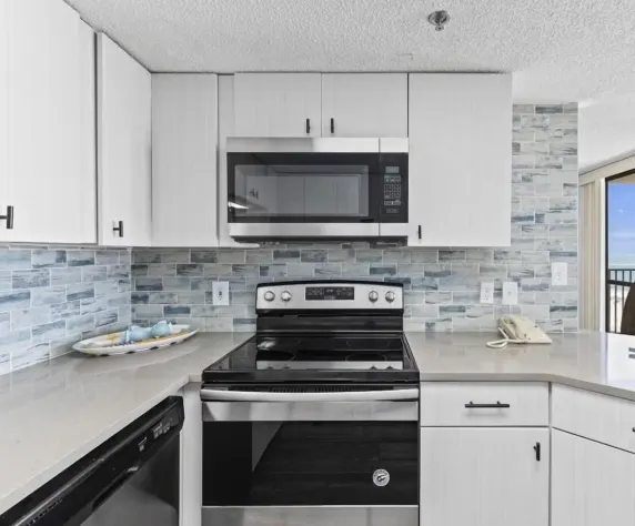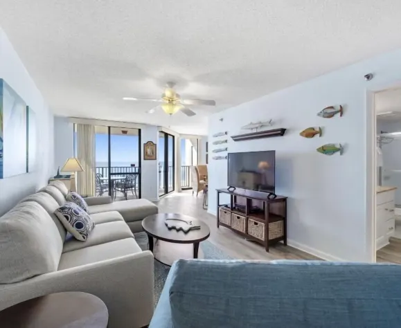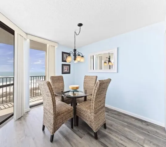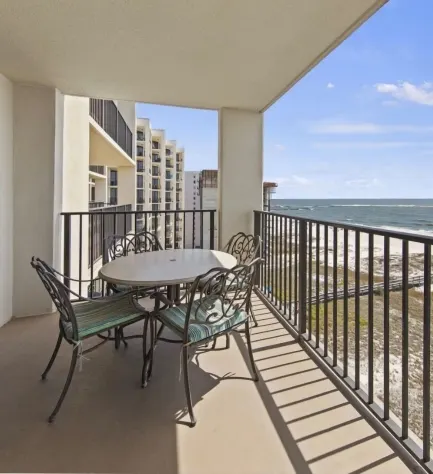 This one bedroom/one bath condo has everything you\'ll need to enjoy your beach getaway. At Phoenix VII, located on the beach, this condo is on the 10th floor and will comfortably accommodate four guests. The one bedroom features a king-sized bed and has direct access to the shared main bath, offering a tub/shower combo. In the living room is a queen-sized sleeper sofa that will sleep two additional guests. This condo has a beautifully remodeled kitchen with the basic essentials and full-size appliances needed to cook and enjoy meals during your stay. Enjoy your meals inside in the dining area or outside on the balcony while watching the boats come and go through the Perdido Pass and listening to the waves crash along the shore. There is also a washer and dryer available in the condo for your use.