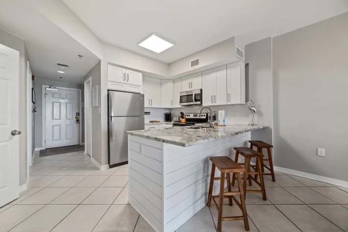 The condo was super clean and beautiful! The beds were comfortable. We had plenty of space for our family of four and enough room to set up a pack-and-play in the guest bedroom for our toddler to sleep. Beach access was easy, and we felt safe in the area. It’s close to many great restaurants . We will definitely stay at this condo again!