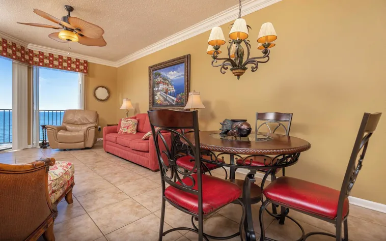Located on the sandy white shores of Orange Beach, Phoenix VII 1410 the perfect location for your next beach getaway! This two bedroom, two bath condo comfortably sleeps 6 and is decorated with high end furnishings. Phoenix VII 1410 is on the 14th floor, providing you with gorgeous views of the Gulf of Mexico as well as the Perdido Pass. As an added bonus, this condo comes with your very own reserved and covered parking space.