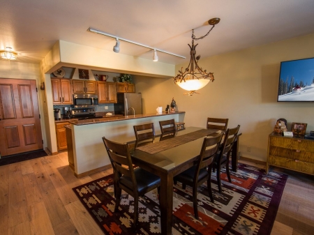 Second level, spacious interior unit with 2 bedrooms, 2 baths and sleeper sofa (King; 2 Twins (or King), Queen Sofa Sleeper). Large hot tub just 50 steps outside your complex door. Outdoor Grills and professional landscaping. Inside the home you will find a fully stocked kitchen with high quality appliances and equipment. Heat and Humidity controls at your fingertips. Washer and Dryer inside the condo. Dining room that seats 6. Comfortable living room with fast wifi and a 57 inch flat screen (cable provided). Covered Garage. All finishings within the condo are professionally decorated by a local interior decorator. Feel at home with the cozy mountain lodge feel. Golf Courses, Tennis, horseback riding, whitewater rafting, hiking and world class restaurants and shopping of nearby Vail just a short drive away
