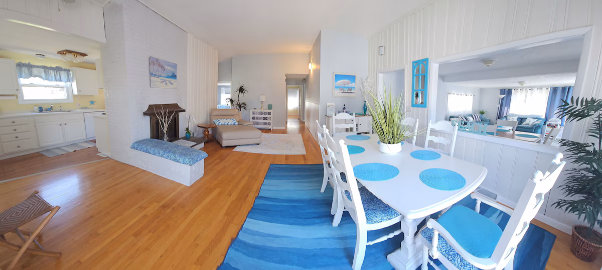 The beach house was in close proximity to beach only a 1 minute walk. It provided ample space for my family of five and was well equipped to handle my young kids. Overall great house!