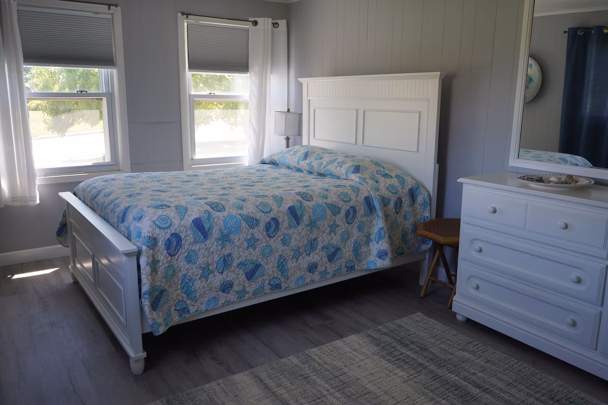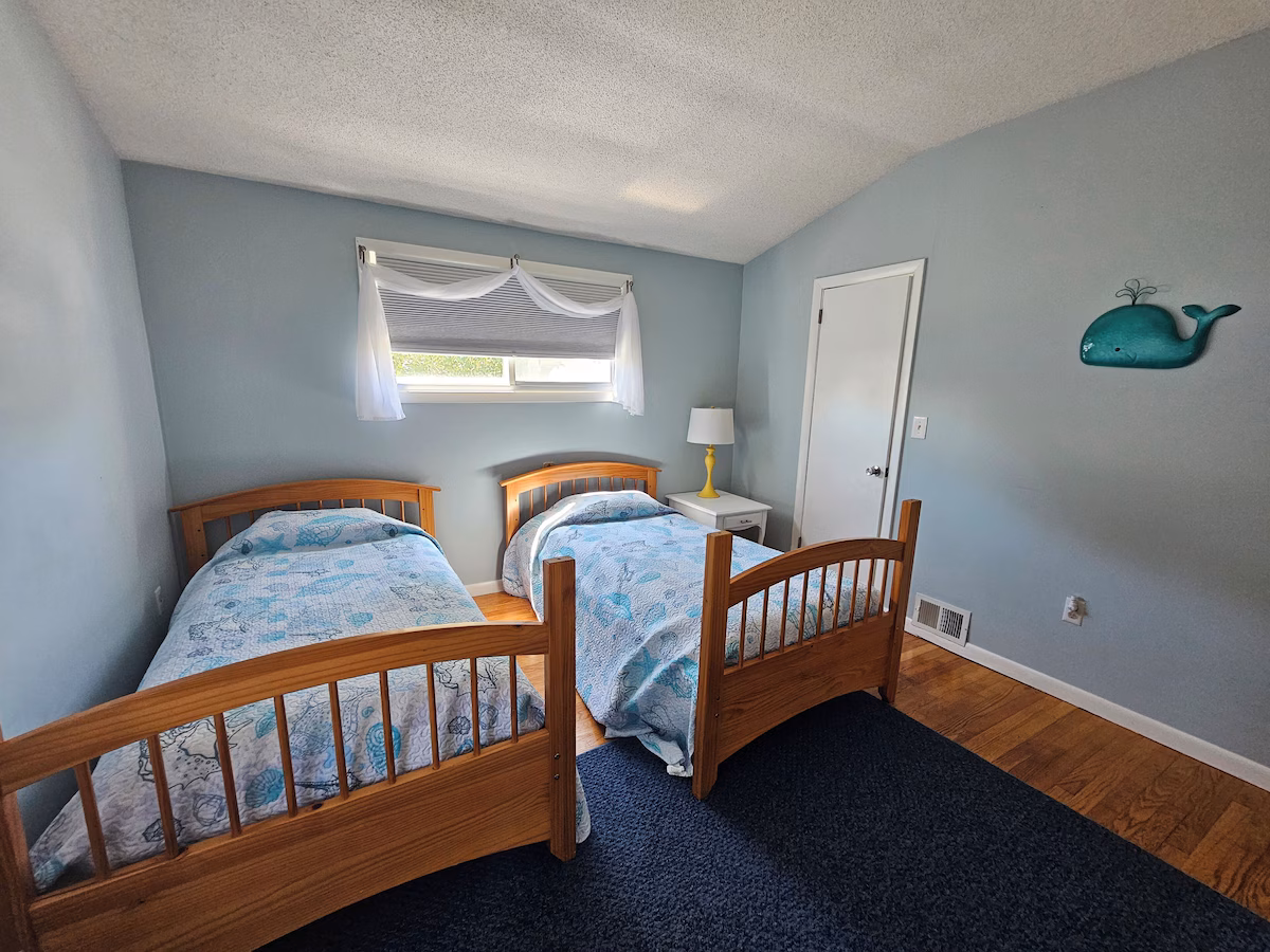 We have been renting our house over 10 years! Families have been making wonderful memories here year after year!! The Private beach is safe and clean! The low tide provides clear blue water and beautiful sand bars to walk to, which is great for children. There is a convenient enclosed shower in the garage with hot water that is great to use after a day at the beach. We provide beach chairs, umbrellas and a wagon to tote your beach gear and kids to the beach 3 houses away. The neighborhood has 106 houses which are all privately owned . It is a very safe area to walk at all times of day and have the kids ride their bikes if they bring them along. The yard is spacious with plenty of room to play and hang out after a day at the beach! There is a fun fire pit in the back yard to roast marshmallows and a grill for barbequing !