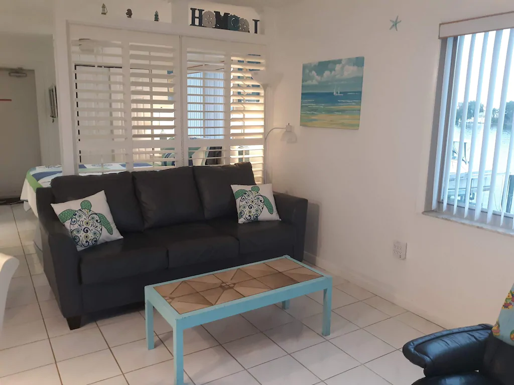 WaterView corner condo, 2nd floor, on the island of Clearwater Beach. AMAZING water views from every window, including the balcony. King size bed in semi-private bedroom area and an upgraded queen size sofa sleeper in living room area. This studio is 405 square feet, but space is maximized to utilize every bit of it. It\'s just a 10-15 minute beachy sightseeing walk to the soft sands of Clearwater Beach. Secured FREE WiFi and a Smart TV for your Netflix viewing account. New owner is a verified Superhost.