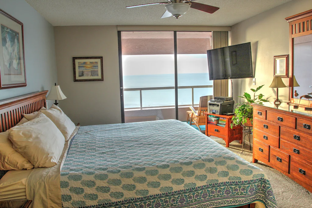 This condo is spacious; 1020 square feet with an additional 170 square feet of living space on the balcony. The kitchen is well equipped with everything you need to prepare your own meals, including dishwasher, ice maker, microwave, coffee maker, blender, toaster, mix master, dishes, pots, baking pans, as well as basic spices. The master suite is furnished with a king sized bed, new bedding, large walk-in closet, bathroom with his and her sinks, large soaker tub as well as a large separate shower. All linens are provided including new luxurious towels, 600 thread count sheets, and duvet. This freshly painted condo features two full bathrooms, front load washer and dryer in the condo, 2 LED TV television sets (55in SMART TV in Living Room, and 47in in Bedroom) and central air conditioning is provided for your comfort. We also offer start-of-the-art FIOS high speed wireless internet and FIOS TV with DVRs in both rooms.