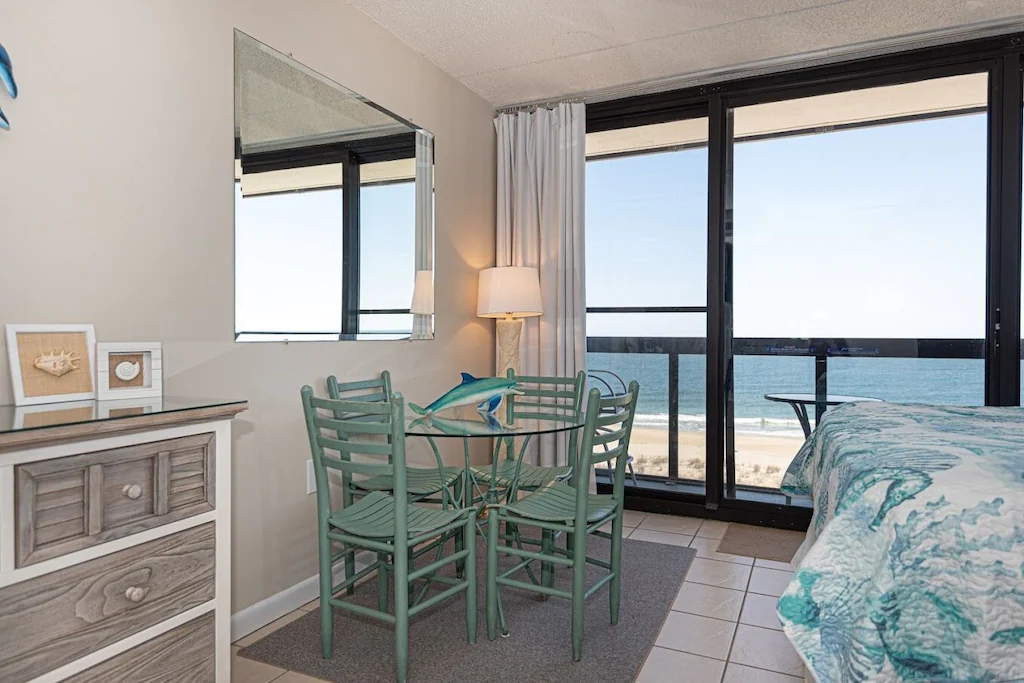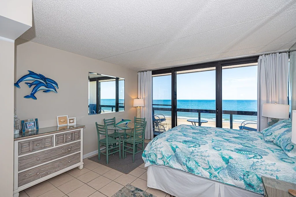Golden Sands 514 is a modern beachfront condominium. This cute and cozy studio apartment with one bath is all you need for your stay in the Golden Sands. This direct Ocean Front has everything you could ask for with a kitchen and a washer and dryer and a large wall-mounted flat screen tv. 514 is on the 5TH. The floor gives you a perfect view of the beach and the activities below. And then there is the beach and all the activities on the large Ocean Front deck. The Golden Sands also has a unique private beach area open only to Golden Sands guests. The large oceanfront deck features many