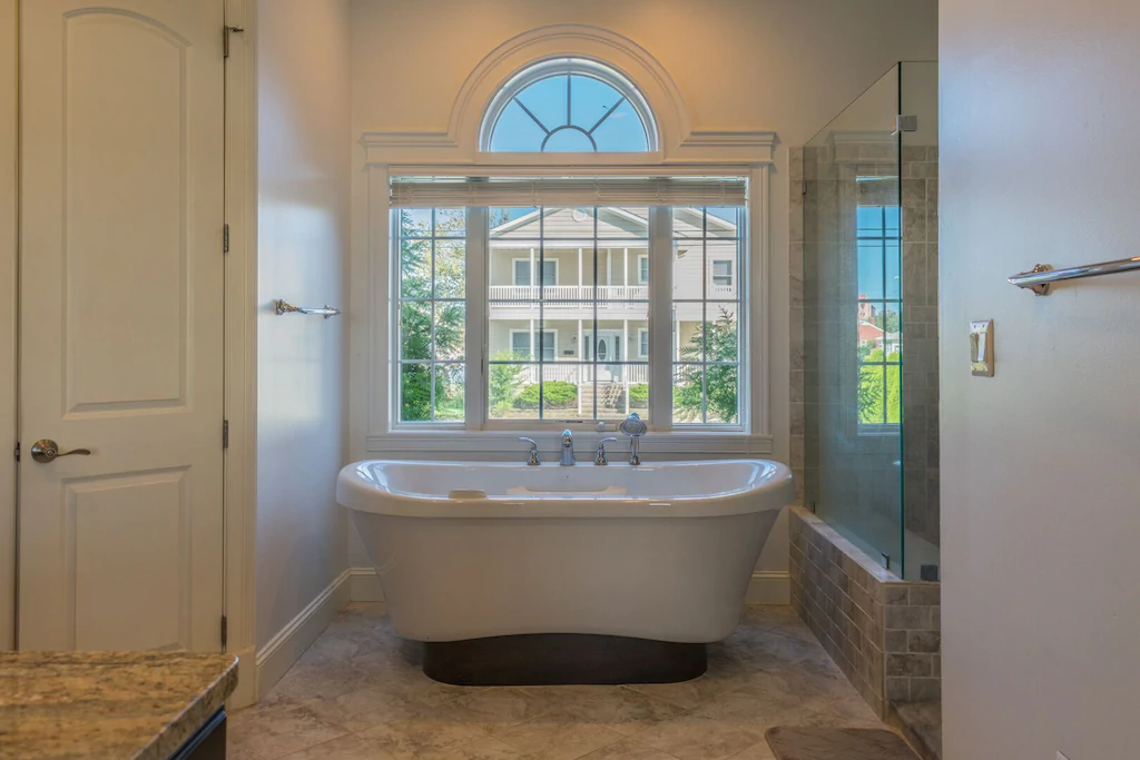 Combine beautiful spacious, bright interior with a jaw dropping exterior including an in-ground pool, 8 person hot tub (OPEN MAY 7 to OCT 31 ONLY ) and a spacious stone patio with all the grilling essentials including an outdoor refrigerator. First floor master and 4 bedrooms with loft on second floor. Master bedroom has a luxury pillow top California king bed. 3 of the upstairs bedrooms have queen size beds and the 5 th room has 2 queen beds. Loft has a pull out sofa bed. In addition to the Master suite that includes a very spacious master bath compete with jacuzzi tub and 2 headed separate oversized shower stall the first floor has a very open floor plan with a gourmet kitchen, two granite islands, stainless applainces a guest bath, den area, eat in kitchen with large table and stools for kids to eat at the Island. Laundry machine with washer / dryer. Oh yes.. and pool table. Please note that there is a semi detached converted garage / cottage on the property that may be used from time to time by the owner. This is accessible through a private seperate entrance on side and does not interfere with guests of the home.