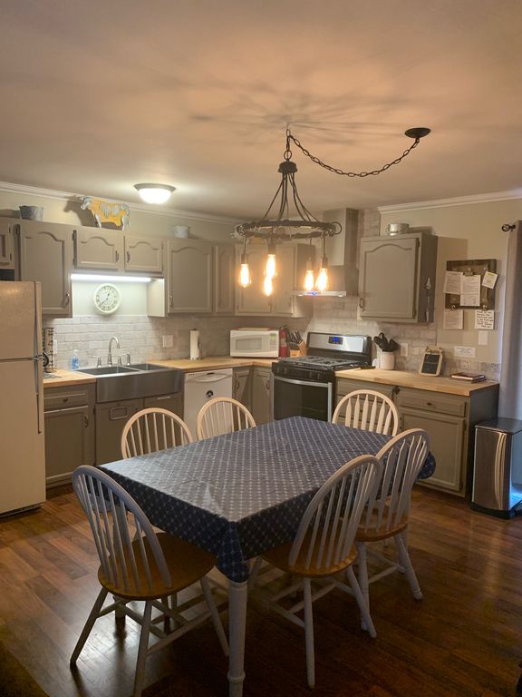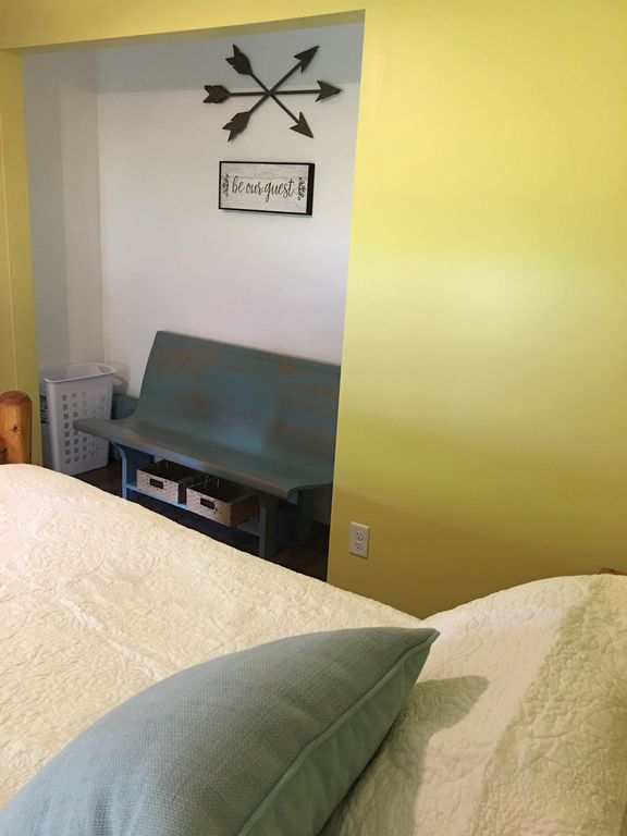 Crab Apple Cottage has central A/C, dishwasher, washer & dryer and a fully stocked kitchen, including microwave, coffee maker (not a Keurig), crock pot, toaster, pots/pans & dishes. There is a queen bed in two of the bedrooms and full bunk beds in the third bedroom. (The bunk beds will hold a total of 300 pounds each). The bathroom has a tub/shower combo. Linens and towels are provided.