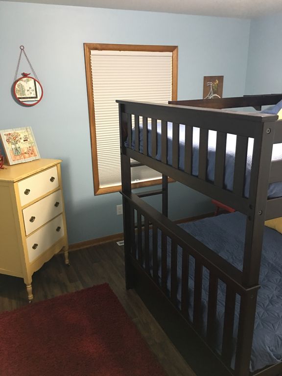 This adorable cottage has been remodeled from top to bottom. We are now booking for weeks in the Summer of 2020. This cottage is located in the front section of Flora Dale Resort which offers access to 400\' of Silver Lake Private Resort beachfront on Lower Silver Lake (an all water sport lake). Down on the beach you will have access to a swim dock, fire pits, volleyball and sandy beach area. Right off the backyard of Crab Apple Cottage is a heated underground pool, clubhouse (with ping pong tables), tennis court, basketball court, tether ball, horse shoe pits and a shuffleboard court. You are able to watch your children play basketball and tennis from the comfort of the cottage\'s patio, which has comfortable seating and a propane grill. Propane is furnished for renters. There is a fire pit in the backyard with plenty of room for all to sit around. Fire wood is not provided. The resort has the feel of a campground but you are in a cottage. It is loads of fun!!!