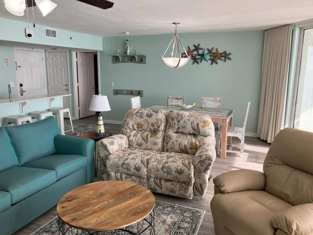 We just completed remodel of condo with new floors,walk in shower, countertops, cabinets, furniture and decorations. You can relax when you come in from the beach in one of 2 rocker recliners, a reclining love seat or 2 loung chairs on the balcony.This 2 bedroom, 2 full bath 12th floor Long Beach condominium features a spacious amount of living space with oceanfront views from wall-to-wall and floor-to-ceiling windows in the living area and the 2 bedrooms. Both bedrooms have balcony access for you to enjoy the sun, sand and waves. A very rare unit with all bedrooms directly on the crystal blue water and white sand beaches of Panama City Beach! Rent includes 2 beach chairs March 1-October 31