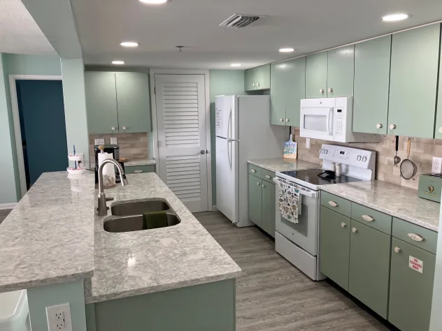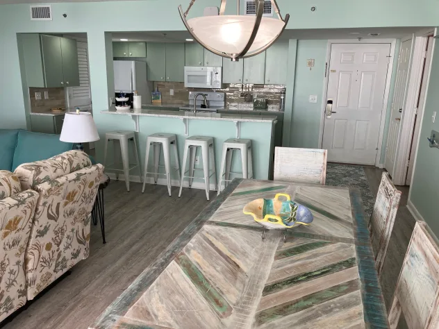 This condo is in a great area close to Walmart, Pinapple Willie\'s and many other great spots. The condo itself is nice although it is not quite as pretty as the pictures. But it is clean and for the most part kept up. The only issues we had was the sink in the spare bedroom started leaking so we shut off the water to it and notified maintenance. No one ever came while we were there but there are two sinks in there. The garbage disposal didn\'t work and kept clogging up water. Other than that, no issues. The elevators are apparently new and kept acting up while we were there but that will hopefully get fixed soon. All in all I would stay here again or at least in this resort.