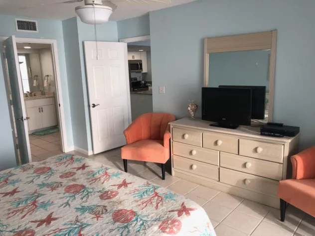 My husband and I stayed in the 1 bedroom unit (1102) in June 2023. The unit was very clean, updated, and spacious for the 2 of us. The view of the ocean was spectacular from all areas of the unit. We enjoyed sitting on the balcony, and enjoyed morning coffee, as well as other meals, while soaking in the ocean views. The kitchen had everything we needed to make meal, on nights we did not go out. The location was very convenient to the grocery store (Walmart) and other restaurants. The resort had nice pools and access to the beach was very convenient. There are 2 spacious elevators available, so it was not a hassle to get to and from the unit. The owners, Dale and Darla, were very responsive to our questions, and you can tell they truly want their guest to enjoy every moment of their stay. We would definitely recommend renting this unit.