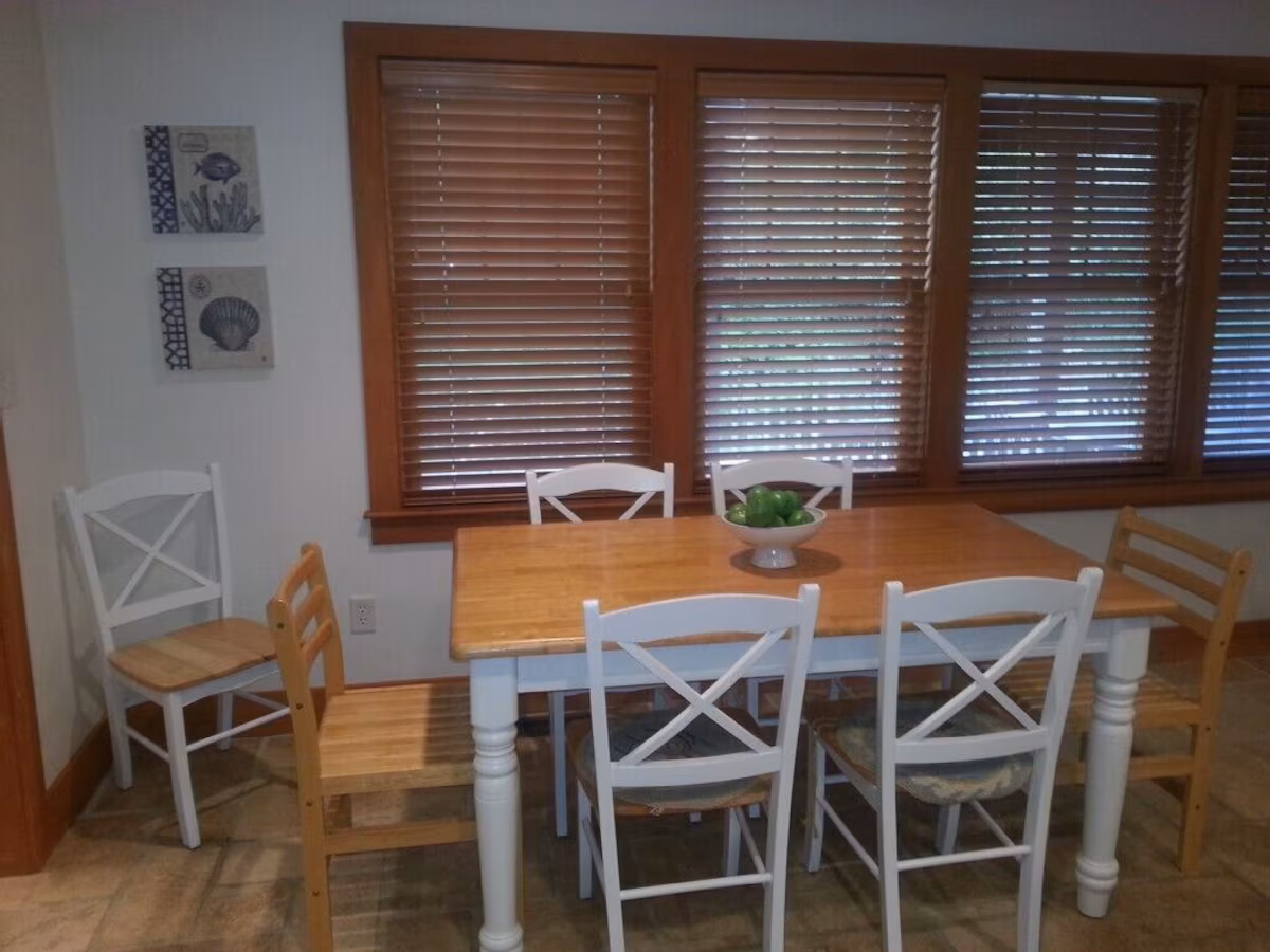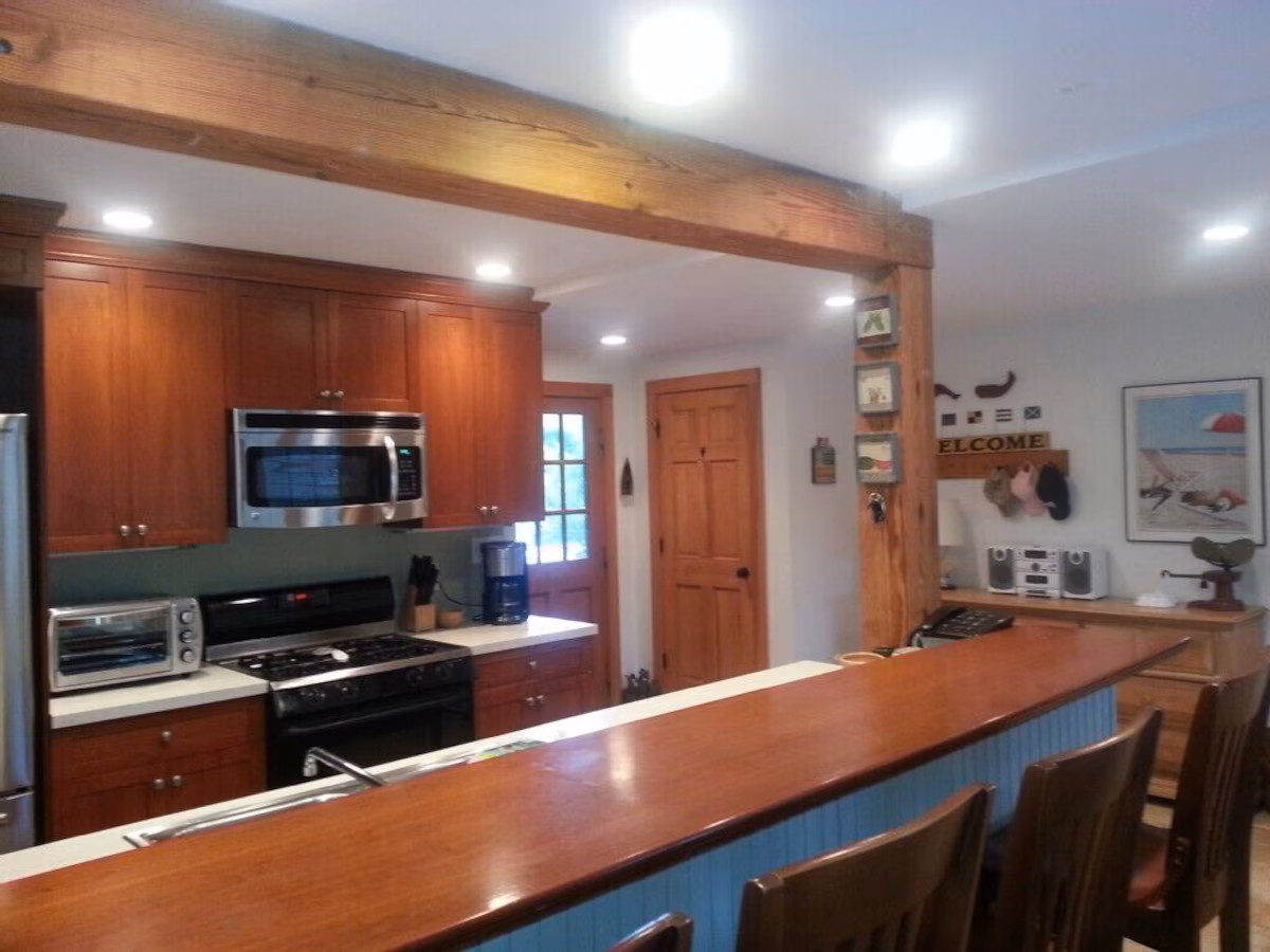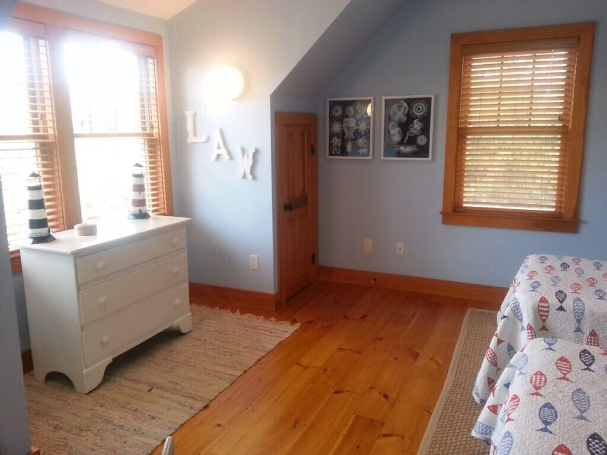 The finished lower level has a bedroom with queen bed and full bath, adjacent game room with slap air hockey and board games. This area is great for children or for an au pair. There is a shed with 5 adult bikes, child\'s bike, fishing rods, beach chairs, beach mats, a beach caddy and three coolers. A generous supply of beach towels are stored in the kitchen cabinet.