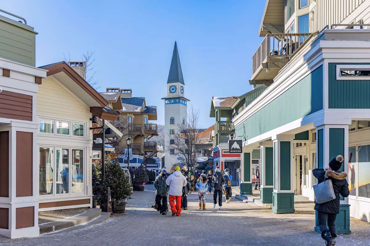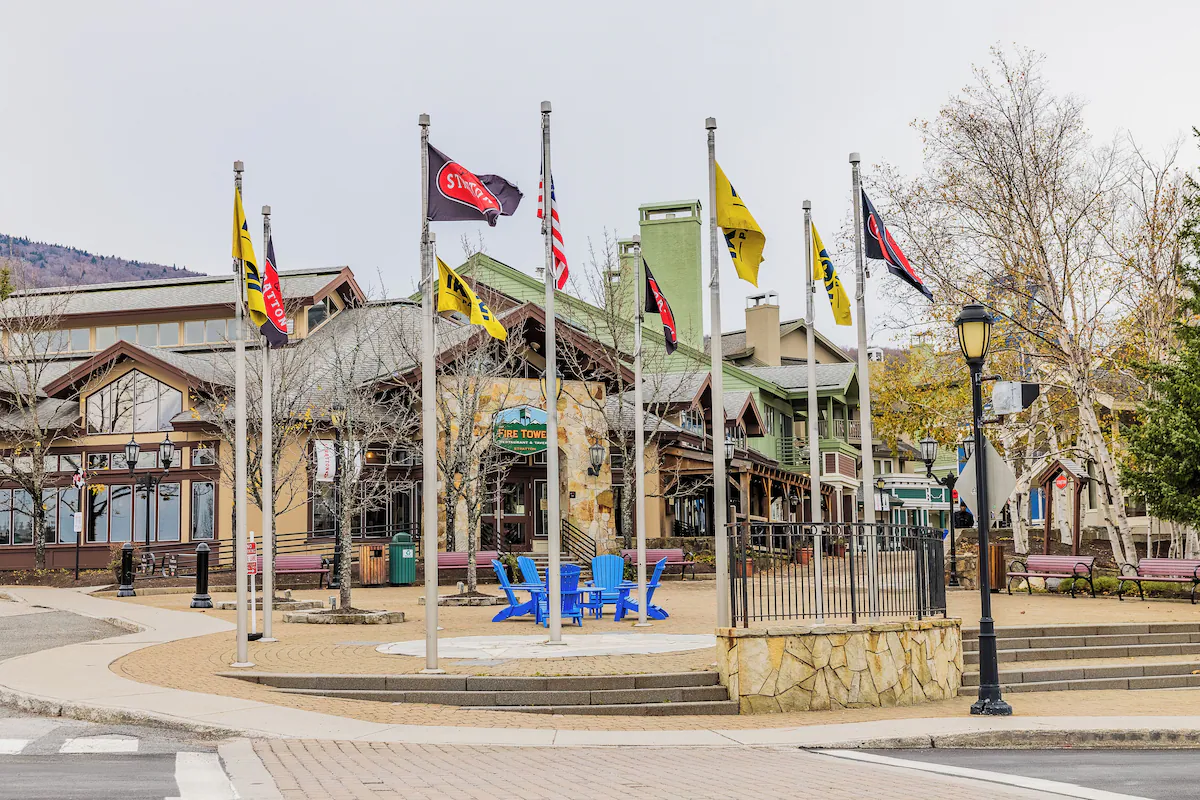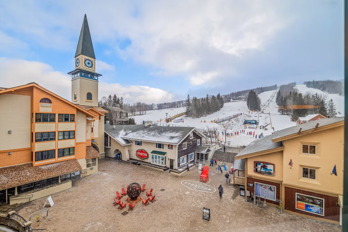 Landmark on Stratton Mountain Vermont. (Clock Tower). Rent for the weekend of April 5-6 and receive a free adult lift pass! DELUXE 2 bedroom 2 bath located in the village and adjacent to the base and lifts, just a 2 minute walk to the ski school meeting area. This unit was renovated in January 2012 with new kitchen appliances and fixtures. There are stunning mountain views from the living room and master bedroom. Both bedrooms and the living room have flat screen TVs equipped with premier cable TV and streaming video including HBO, Cinemax, Showtime, Starz and TMC. Never drive (2 parking spaces included). Our unit is located in the village of Stratton, home to the BEST BEST restaurant VERDE in our building, walking distance to other restaurants and shops.