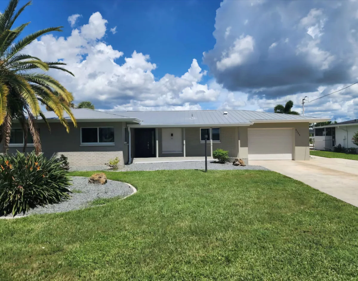 Discover the beauty of Cape Coral from this phenomenal 3-bedroom house. With 2 queen beds and 1 bunk bed, this amazing property offers a comfortable stay for guests. Enjoy the convenience of amenities like a washing machine, AC, WiFi, and more. This home features a private pool, boat dock with Gulf access, and stunning canal views. Relax in the spacious lanai, BBQ grill, and outdoor lounge. Enjoy a fully stocked kitchen, fast Wi-Fi, and smart TVs. Minutes from beaches, dining, and shopping. Perfect for families, boaters, and couples looking for a serene getaway. Our place will help you feel at home while you\'re traveling in Cape Coral.