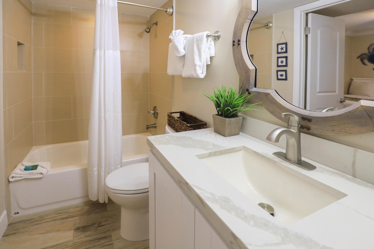 • Second bedroom with two twin beds or a queen bed