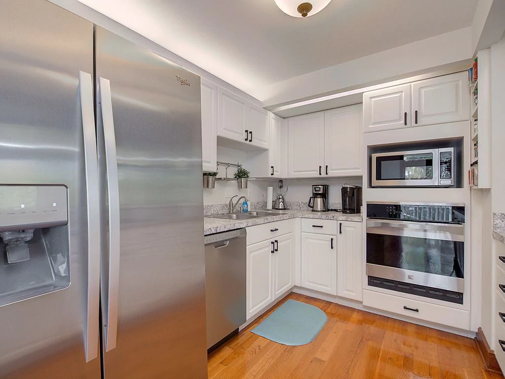 There are two kitchens. The main kitchen is located upstairs and there is a small kitchenette downstairs located off of the pool area.