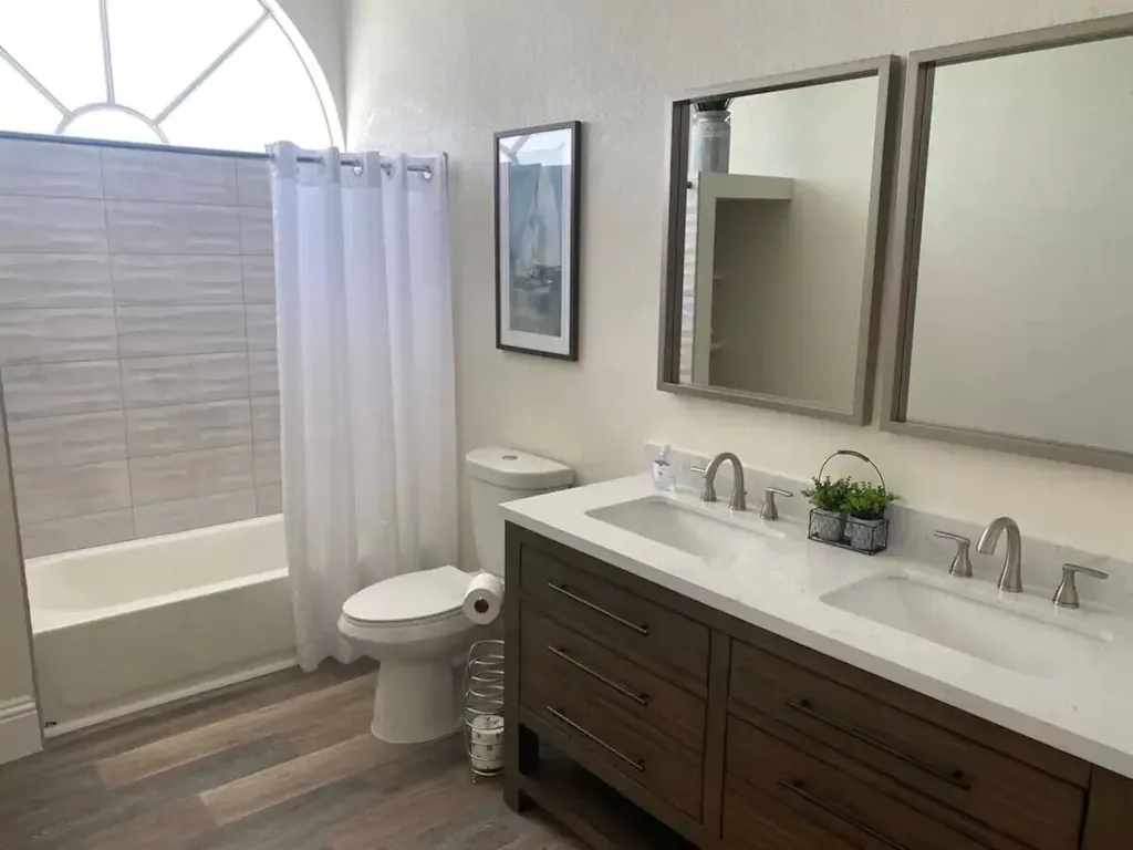 1st bedroom includes: king size bed, 45 inch TV and Our Signature Bedding. The second bedroom includes: 2 queen beds, 45 inch Smart TV and Our Signature Bedding, 2 full baths, full kitchen, living room with 65 inch Smart TV, fast wifi. Adjacent to Waterfront resort with swimming pool, Grill area, 10 slip boat dock, Tiki hut, Fishing and Event concierge.