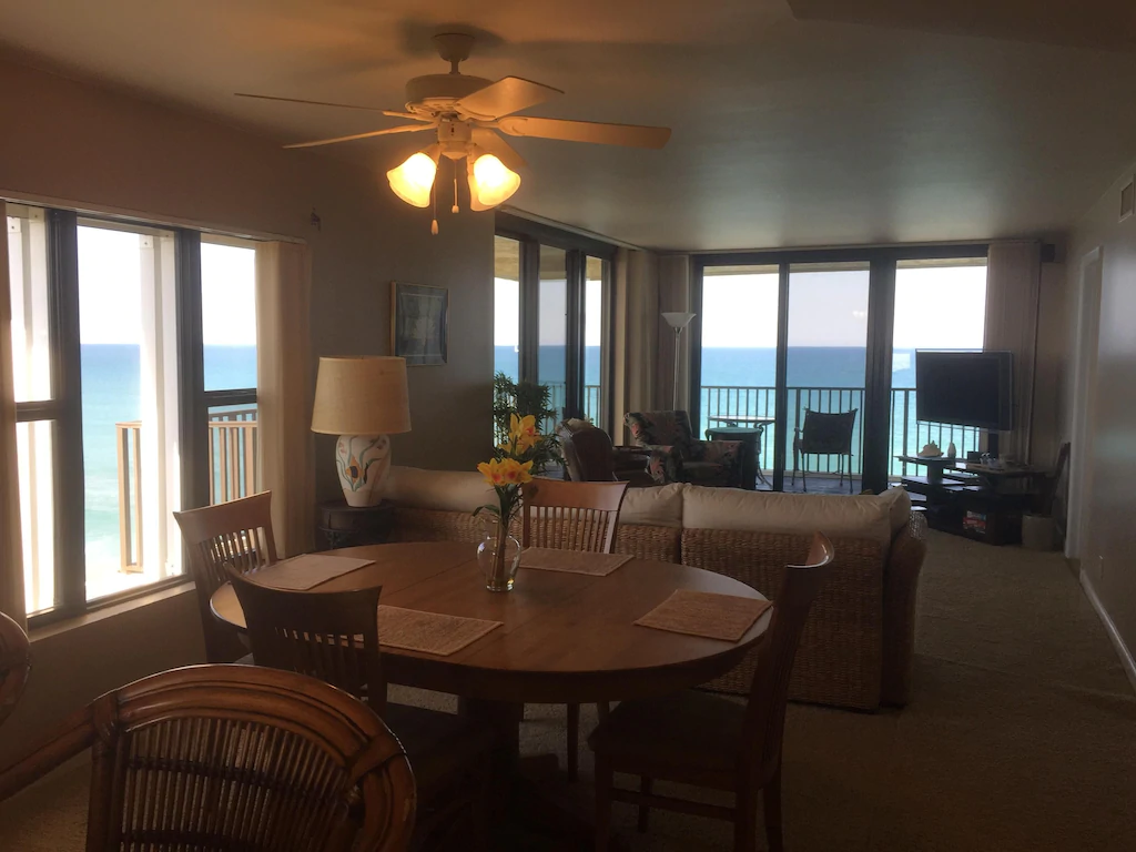 This 2 bedroom 2 bath penthouse unit is the ideal place to relax and enjoy gorgeous sunrises and sunsets from your own wrap around balcony. Spacious layout with updated kitchen, granite countertop, flat screen TV\'s, surround sound stereo, and full size washer/dryer. wifi both in the unit and poolside. There are endless things to do in Jensen Beach, golf, fishing, shopping, swimming, horseback riding.