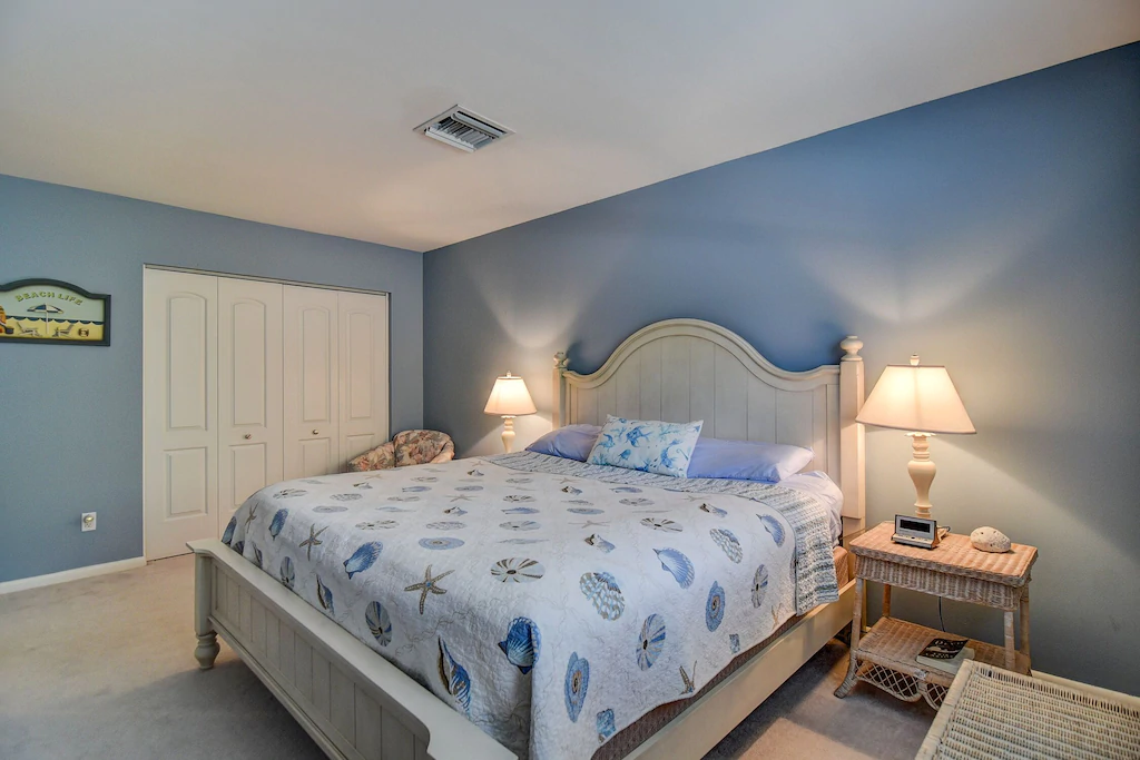 There are two bedrooms plus another convertible room with a sleeper sofa. The master suite includes a large dedicated bath, the large guest room also has a king size bed, and there is a comfortable sofa bed in the bar with a privacy door. The master suite also enjoys dressing/sitting room and the large master bath with a shower, and has a private entrance to the pool and the spa to enjoy stargazing in the warm-water jets. You\'ll enjoy a king-size pillow top mattress with Egyptian cotton sheets in your Caribbean four poster bed. There is also a bar off the kitchen with an outdoor sitting area with Adirondack chairs and a gas grill just outside of the sliding glass doors leading to the fenced backyard area with the pool and spa. The master and the guest room both enjoy luxurious linens and king size beds. The guest room is the original master, so it is a very nice size and also has a hide-away twin size Serta bed with a memory foam mattress if needed. There is also a brand new queen sleeper in the bar with a Posturepedic memory foam mattress, plus there is a door for privacy so it is like a 3rd bedroom. We have Comcast high definition cable and wifi, and the living room has an LED Smart 65\" television with HDTV, and there is also a flat screen TV in the bar. There is super strong private WiFi that works throughout the house and on the patio out to the pool. All this just a block from the entrance to your private beach with a tiki hut. You can even hear the waves from the pool or hot tub at night. The pool has changing LED lights for fun at night too. And there are pool floats, fun noodles, and pool toys. Please note that the pool DOES NOT have a child safety fence, so NO TODDLERS OR CHILDREN WHO CAN NOT SWIM are permitted at this house.