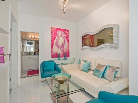 Estero #1,is part of a two-story quadraplex that looks out over a quaint courtyard and a pair of majestic, 100 year-old trees. A modest garden is sprinkled with tropical plants.