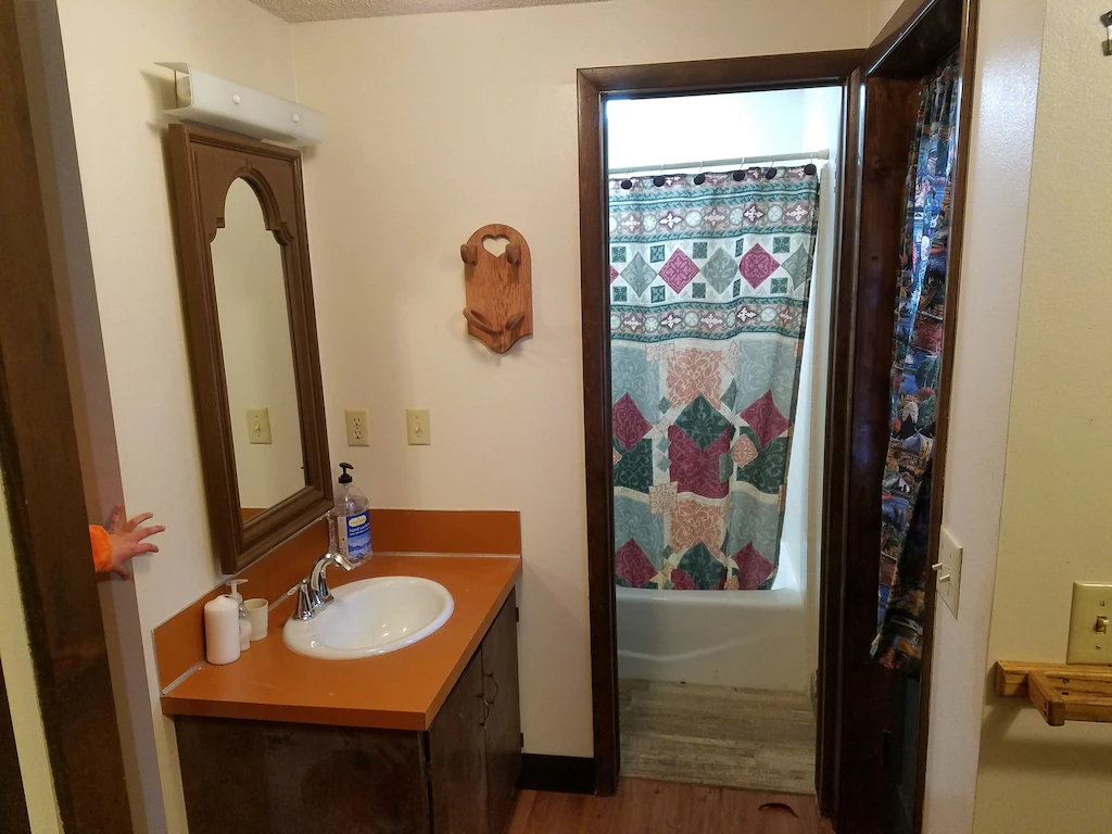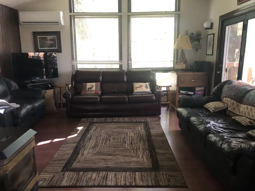 Looking for a way to escape the hustle and bustle of everyday life and create memories with your spouse, friends, or family, this is the place to make this happen. Wonderful cabin located just outside of Paradise, Utah 15 minutes to Logan, Utah and 5 minutes to Hyrum Dam. The cabin has two stories. The main level has a great room with leather couches, fully stocked kitchen, half bath, TV with satellite dish, board games, wood burning fire place, air conditioning, large deck with gorgeous views of pond on property and the Little Bear River Bottoms. Basement level has gas stove, electric heat, two bedrooms, both with very comfortable queen beds, and a full bath. Walking outside you will find a patio with a Weber grill and flat top grill for cooking, a large fire pit, a large lawn area for games including volleyball. There is a one-acre pond for fishing, but no swimming or kayaking. Access is down a gravel road. We recommend 4-wheel or all-wheel drive high-clearance vehicles. The cabin sleeps 4 in two queen beds, but has two long leather couches and a leather love seat couch (extra bedding as well) on the main floor where others could sleep and tents are allowed.