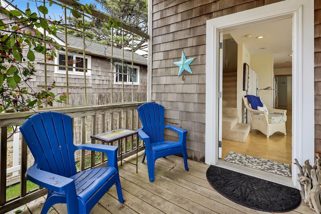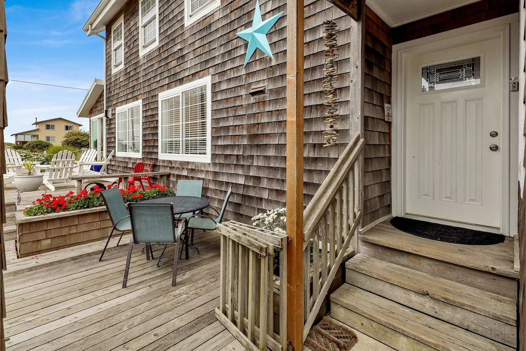 All second floor bedrooms have ocean views and vaulted ceilings. Two queen bdrms, and a loft with 2 twins. Full tub bath accessible to all rooms.