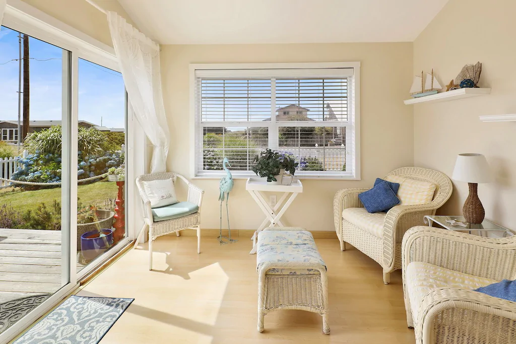 Open-concept living, dining, kitchen, sunroom, plus master bdrm w/walk in shower bath on main floor. Freestanding gas fireplace and flat screen HDTV in living room. Cozy sunroom to sip your morning coffee or watch the evening sunset. WIFI throughout