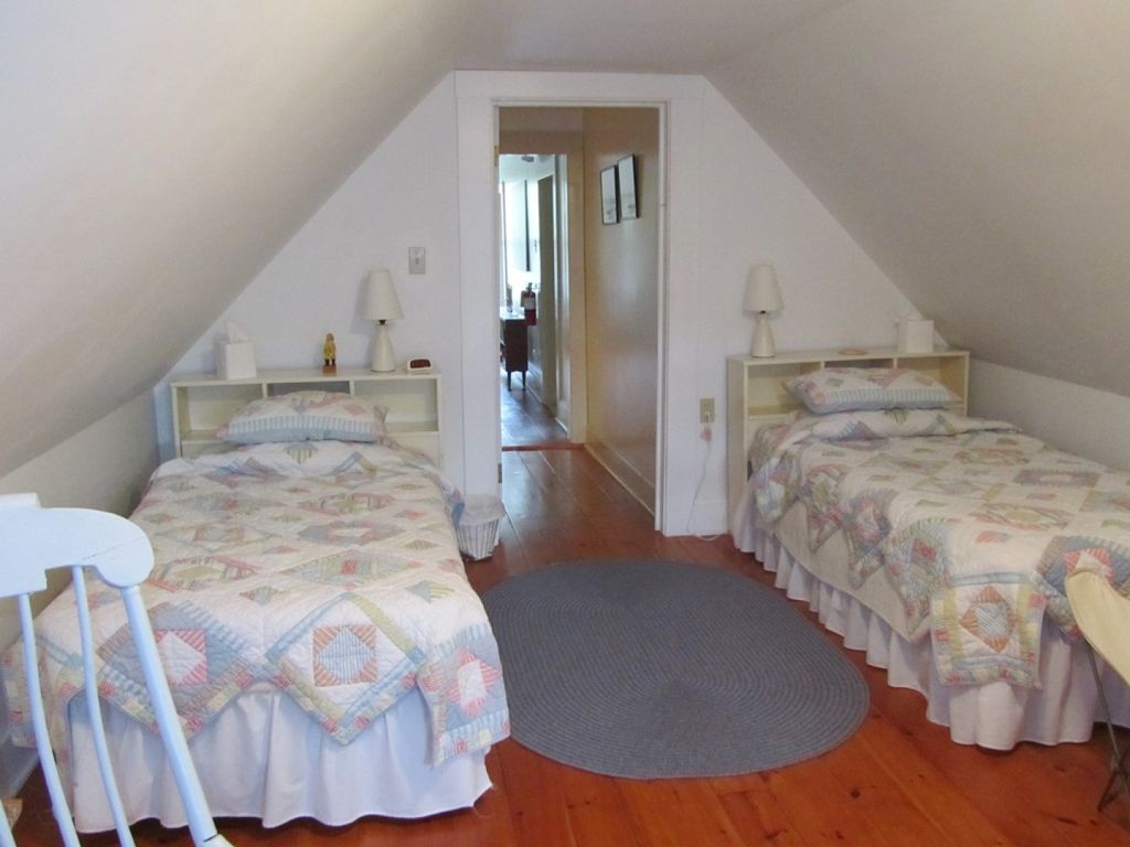 The house sleeps 6 people three bedrooms. The master bedroom has a queen size bed. There is a double bed in the second bedroom and two single beds in the third bedroom. There is a TV in the single bedroom for movie watching only. There is one four-piece bathroom on the ground floor and a two-piece powder room upstairs. Bed linens, towels and paper products are provided. Other amenities include: a charcoal BBQ