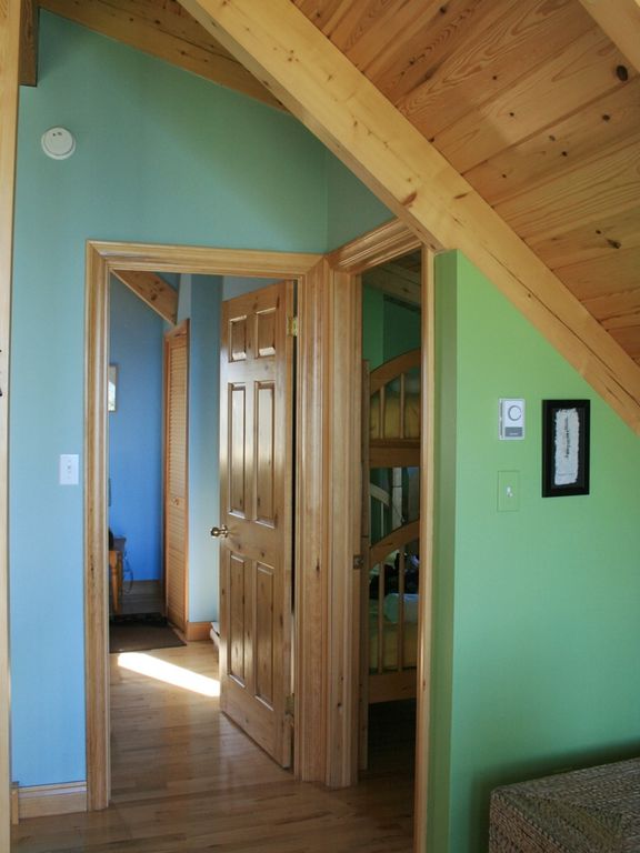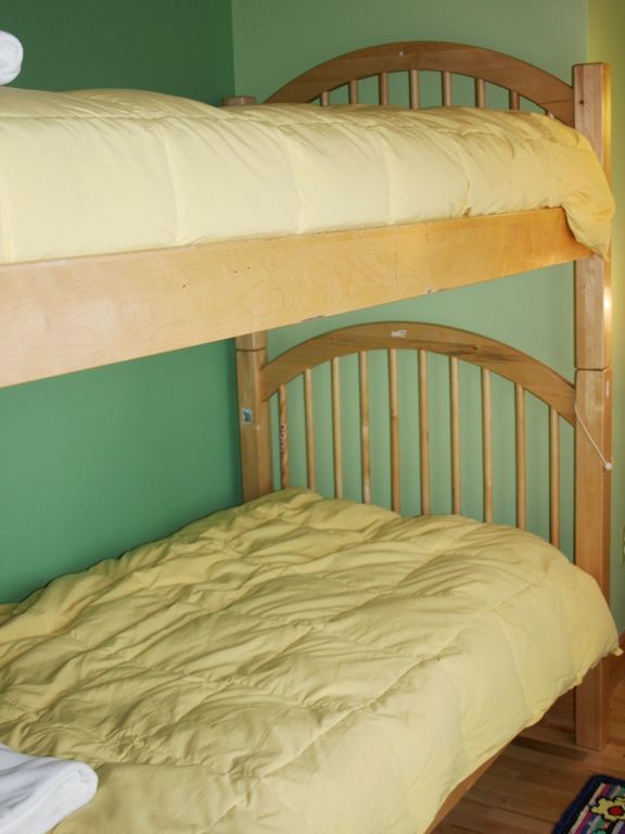 The house sleeps 6 people in three bedrooms. The downstairs bedroom has a queen size bed, Upstairs is the master bedroom with a queen size bed and a second guest room with a set of bunk beds. Also downstairs is a 4-piece bathroom and a laundry/utility room. Bed linens and towels are provided. Other amenities include: propane BBQ and WiFi. This house has a STRICT NO PET POLICY.