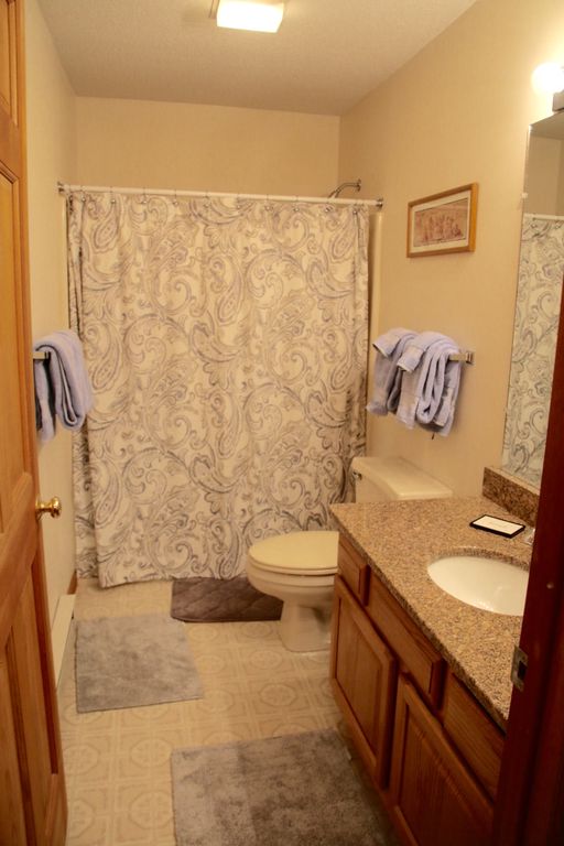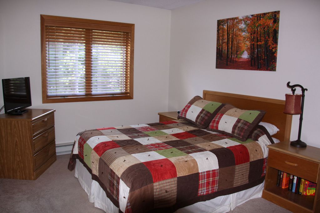 This is our vacation condo that has been remodeled and new furnishings and granite counter tops added. It sleeps 6: king bed, queen bed, and two twin beds. It is fully stocked to make sure your stay is comfortable. Full kitchen with all the appliances and amenities. Linens and towels are provided. This is a 2nd floor condo with 3 bedrooms and 2 baths. The master bathroom is connected to the master bedroom. The second bathroom is in the hallway outside the 2 other bedrooms. Our condo overlooks Mt. Cranmore which is visible during winter months and lit up at night. Please note, this is a non-smoking unit.