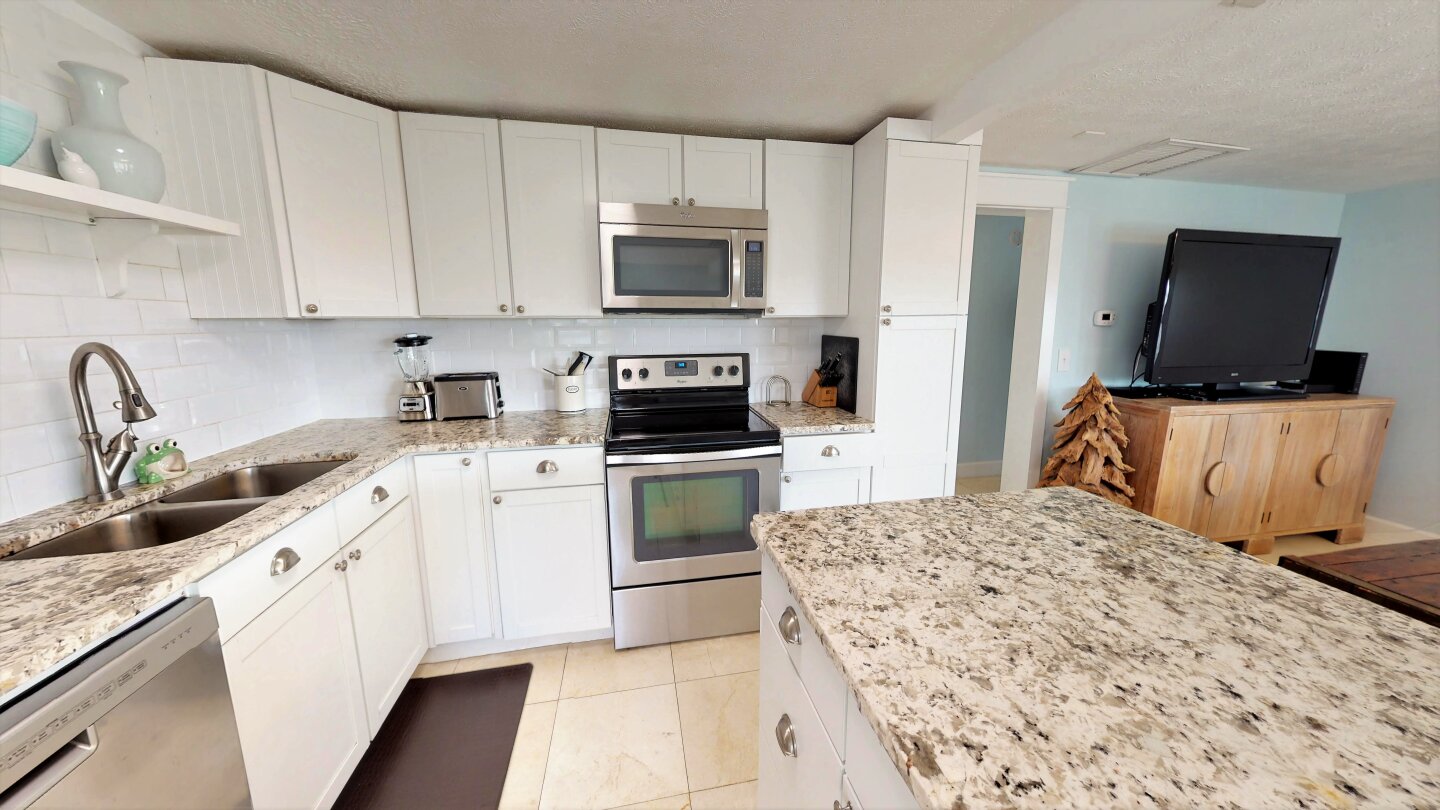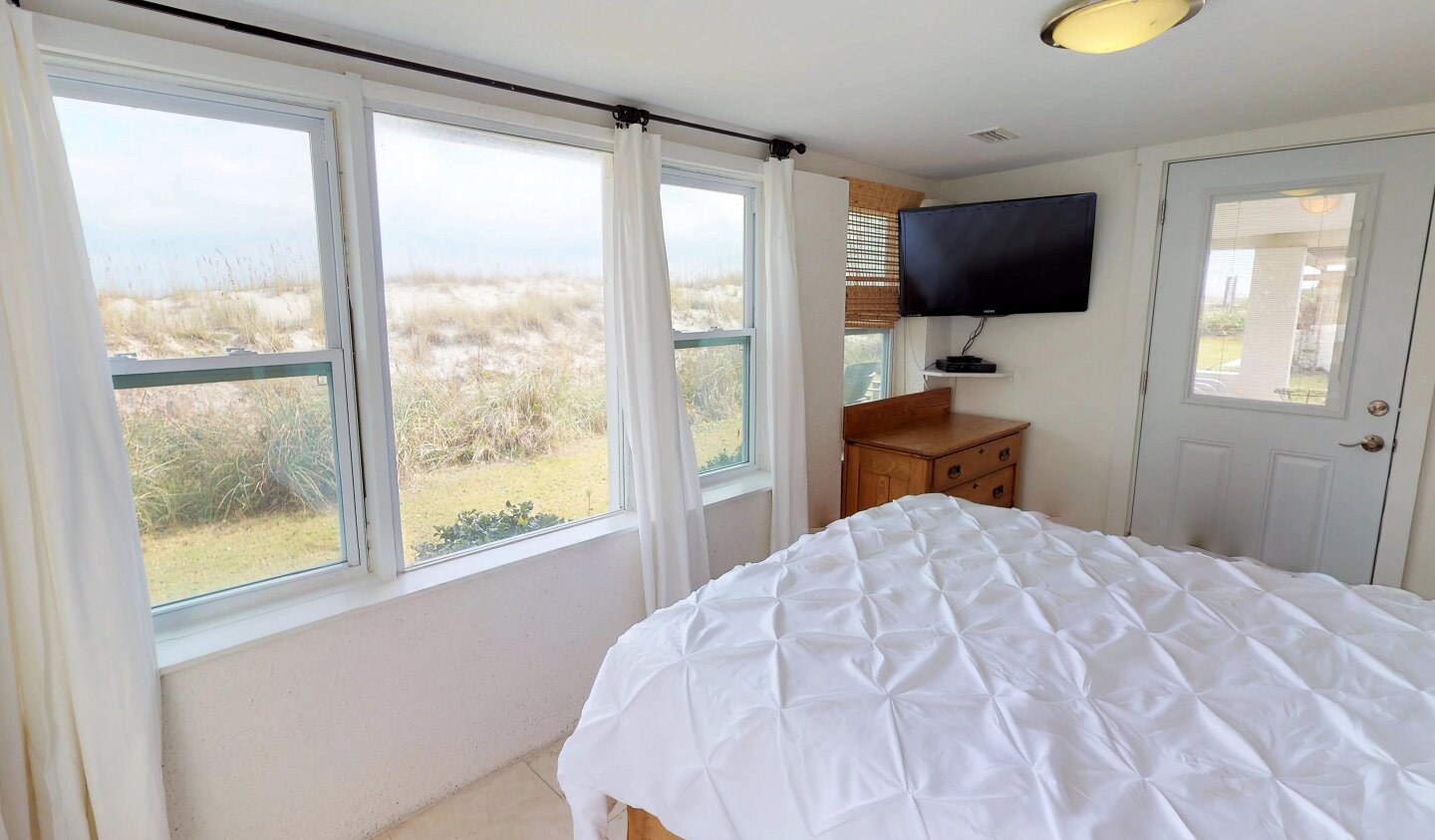 OCEAN VIEW BEDROOMS - There are 2 Queen Bedrooms. Both have Ocean Views & 42" Flat Screen TVs. One is direct Beachfront with 180 view and uses the Hall Bath. The other has an 8 foot Picture Window and a Private Bath. Enjoy waking up to the sunrise. They can be breath taking.