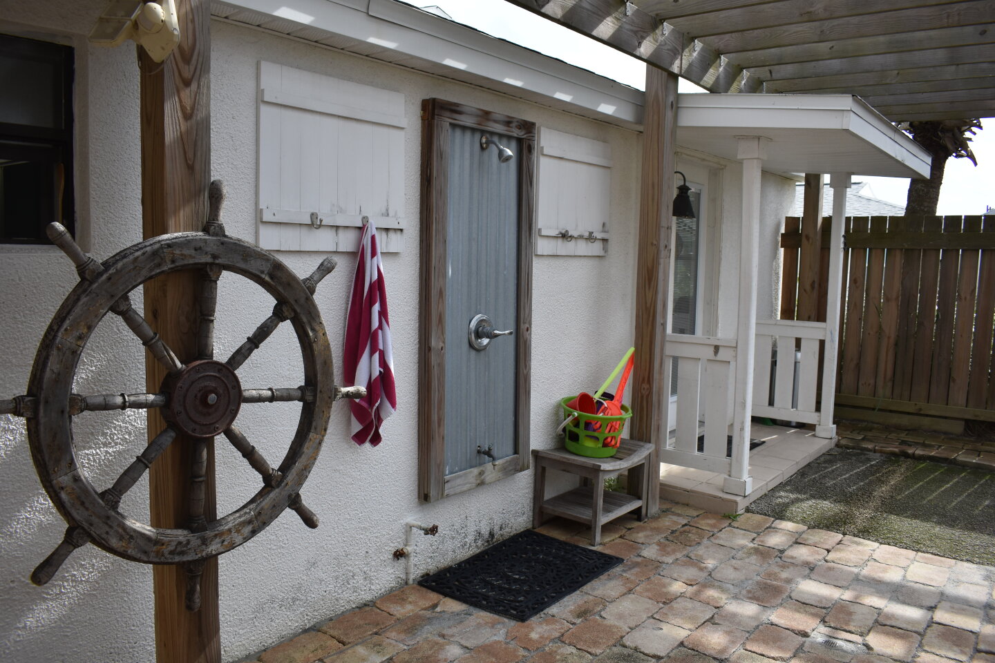 COVERED PATIO with OUTSIDE SHOWER, GRILL and WASHER/DRYER - In front of the house is a Private Courtyard with Grill. Outdoor shower with hot & cold water. Beach Chairs and Boogie Boards for your beach fun. And a WASHER/DRYER.