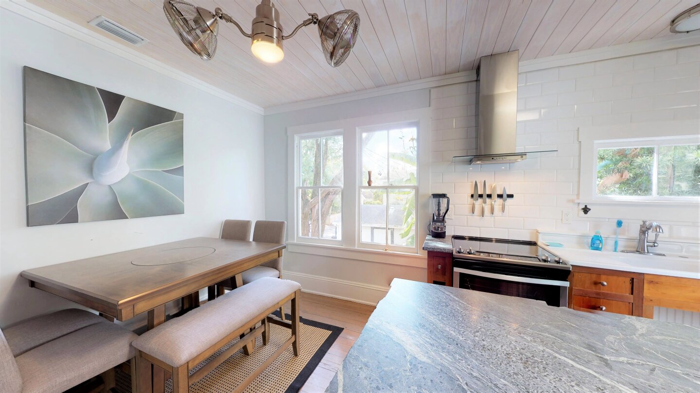 Great Downtown location only half mile stroll to St George Street, the center of the Historic District, and 3 miles to the beach this 2017 Remodel combines the Old World charm of Heart of Pine Wood Floors & 1919 Claw Foot Tub with the NEW look of Marble and Glass.