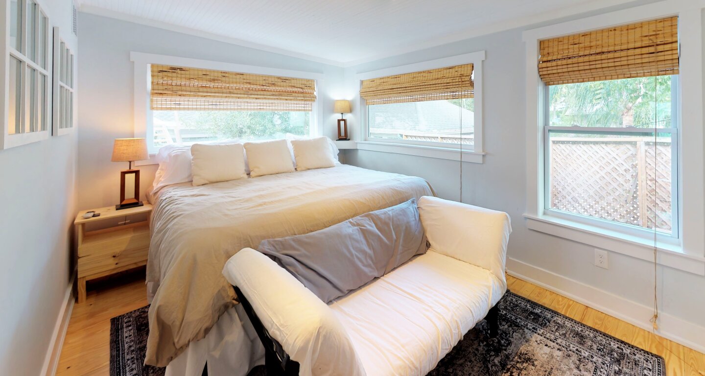 Totally Renovated Downtown Upstairs Guest House. Great Location easy half mile walk to all the Historic Sights and Restaurants yet only 3 miles to Vilano Beach or 5 to St Augustine Beach. We provide Beach Chairs, Towels & Boogie Boards. It is truly the "Best of Both Worlds. Versatile space: Rent the Upstairs with 3 King Bedrooms & 2 Baths that Sleeps 9 (shown here) or add 1st Floor for an additional Kitchen & Greatroom with Sleeper Sofa and a extra King Bedroom + additional 1.5 Baths for and extra 5 Guests.
