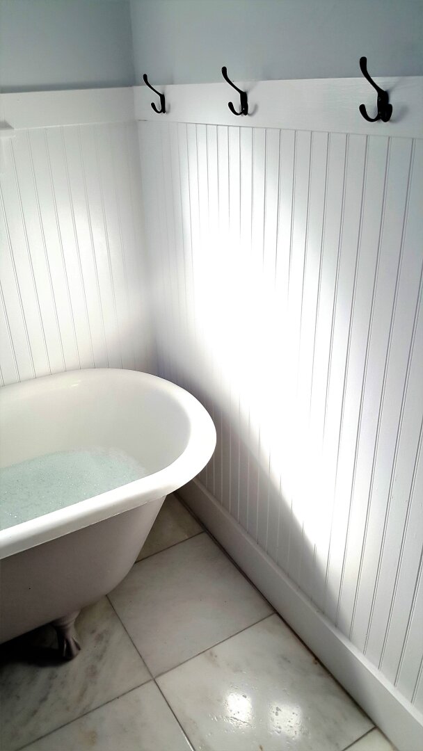 The Bath has the "Original" Claw Foot Tub stamped with a 1919 date. We added a shower option for your convenience but let me suggest you try a bubble bath. My Husband & I only do "Baths" Try it. This is the time to relax. You are on vacation! I hope you enjoy the "Blue" Night Lightt, very soothing, and the Marble Floors.