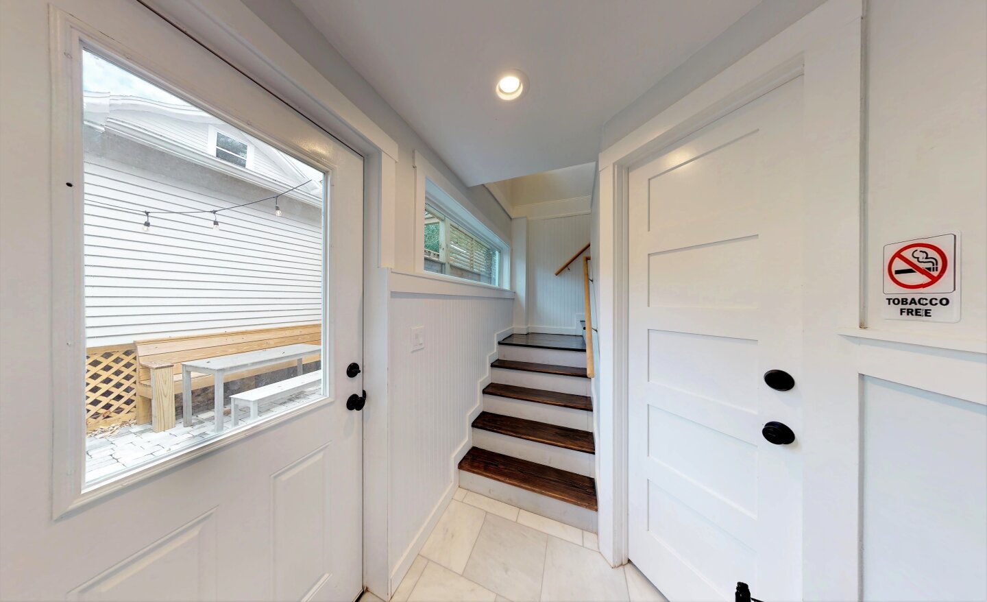 A frosted mural glass door leads to a private "Secret Garden" with a second Grill and Covered Dining area. So you can have 2 private outdoor spaces. And it has a dedicated Parking spot in the Alley which makes a total of 3 dedicated Parking Spots.