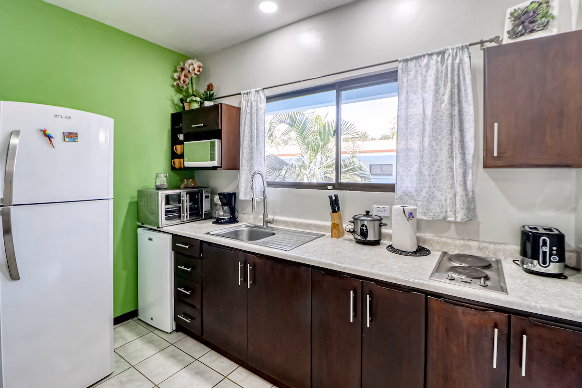 Experience all the charm of Costa Rica at this relaxing getaway! With a convenient location just 500 meters from the beach, you\'re in a prime spot to dig your toes in the sand and take a dip in the open waters. Back at home, a shared pool and spa in the center of the complex offer another inviting space to unwind. Rinse off in the outdoor shower and dive into a vacation read while you lounge under the palm trees.