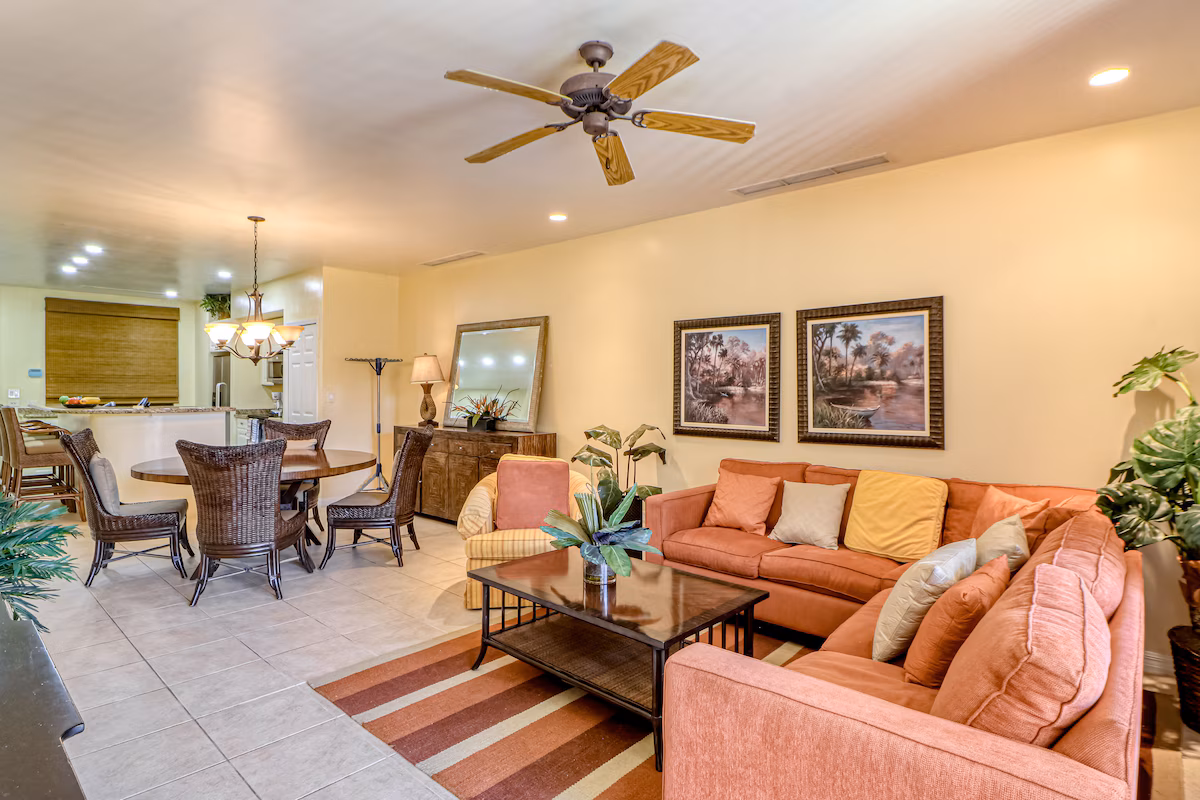 There is nothing better than being in the heart of Coco, so indulge in that long-awaited getaway and live like a local in this wonderful home away from home. With tropical themes throughout, plenty of space to spread out, and all of the comforts you need for an unforgettable vacation, you will never want to leave. When you want to head out for the day, the beach is mere minutes away, yet you can stay close to home as well with a shared pool and hot tub on-site that will be ideal for cooling off or soaking in bliss under the colors of the sunset. When everyone returns to home base, let the culinary-inclined guests show off their skills in the full kitchen and reminisce at the breakfast bar. Enjoy eating together at the circular dining table or head out to the private furnished balcony and dine al fresco. When the stars come out, kick back on the sectional sofa and watch a favorite show on the flatscreen TV or share favorite memories on social media using the free high-speed WiFi!