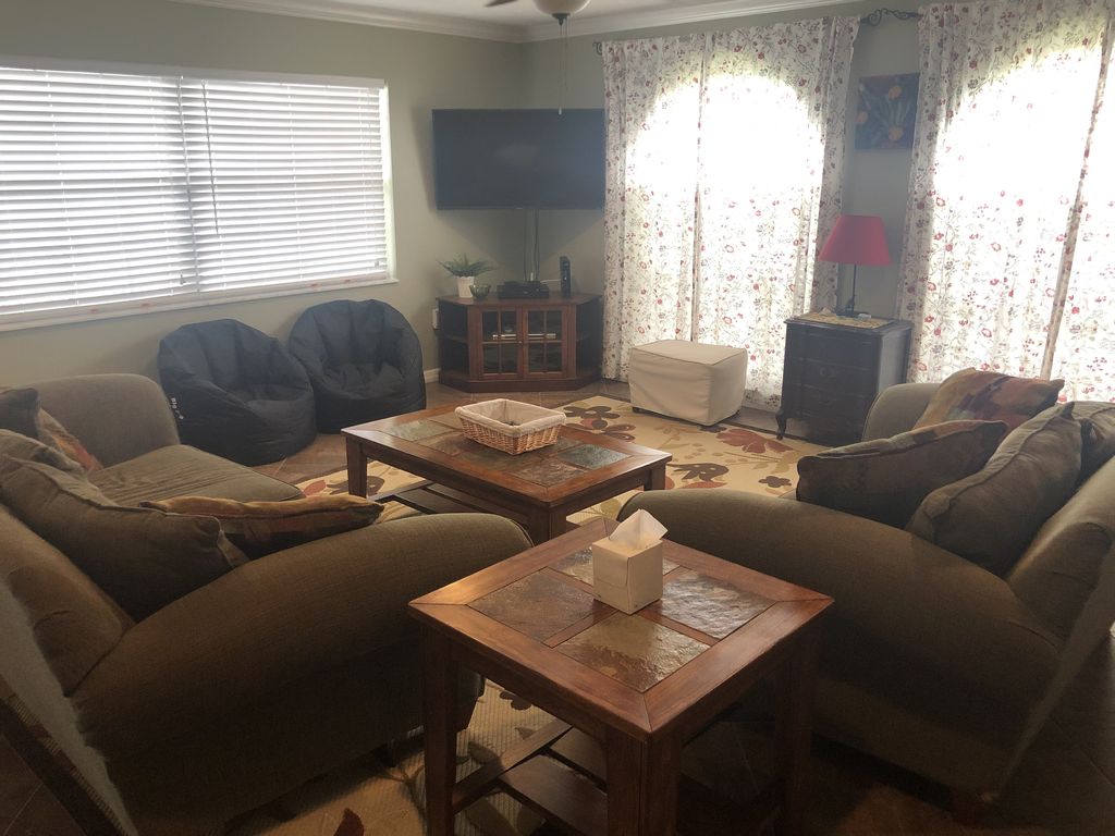 This unit is fully furnished there are two flat-screen TVs with DVD players.