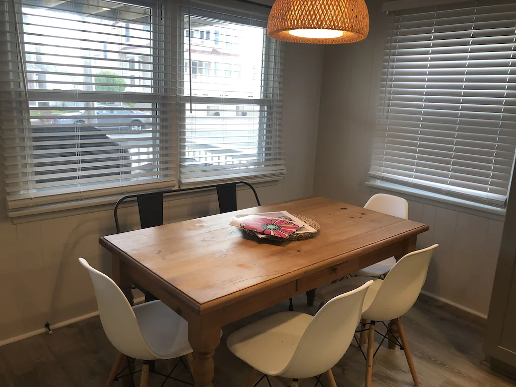 Enjoy a meal, cocktail or book on the fully furnished deck (complete with new gas grill) on this quiet, family friendly street. There is an outside shower, on premise parking for one car, and free street parking.